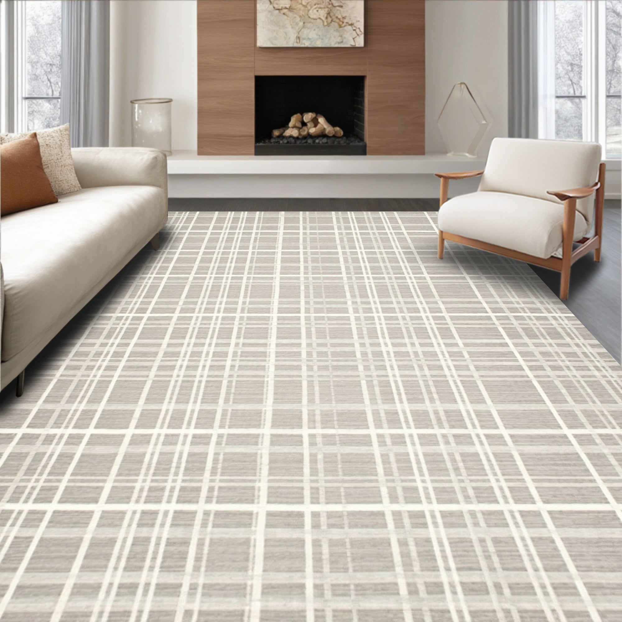 Ultra Soft Area Rug, Non Slip, Stain Resistant, Washable Area Rugs for Living Room, Bedroom, Geometric Plaid Runner Non Slip Comfort Beige(Beige) Overview: