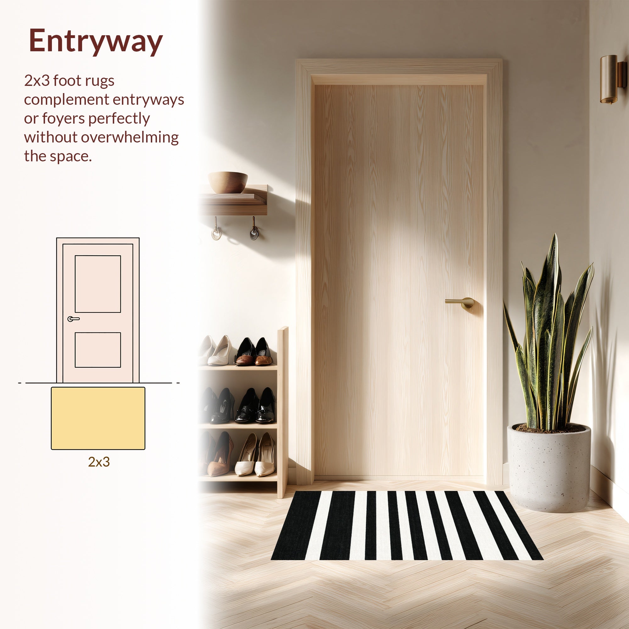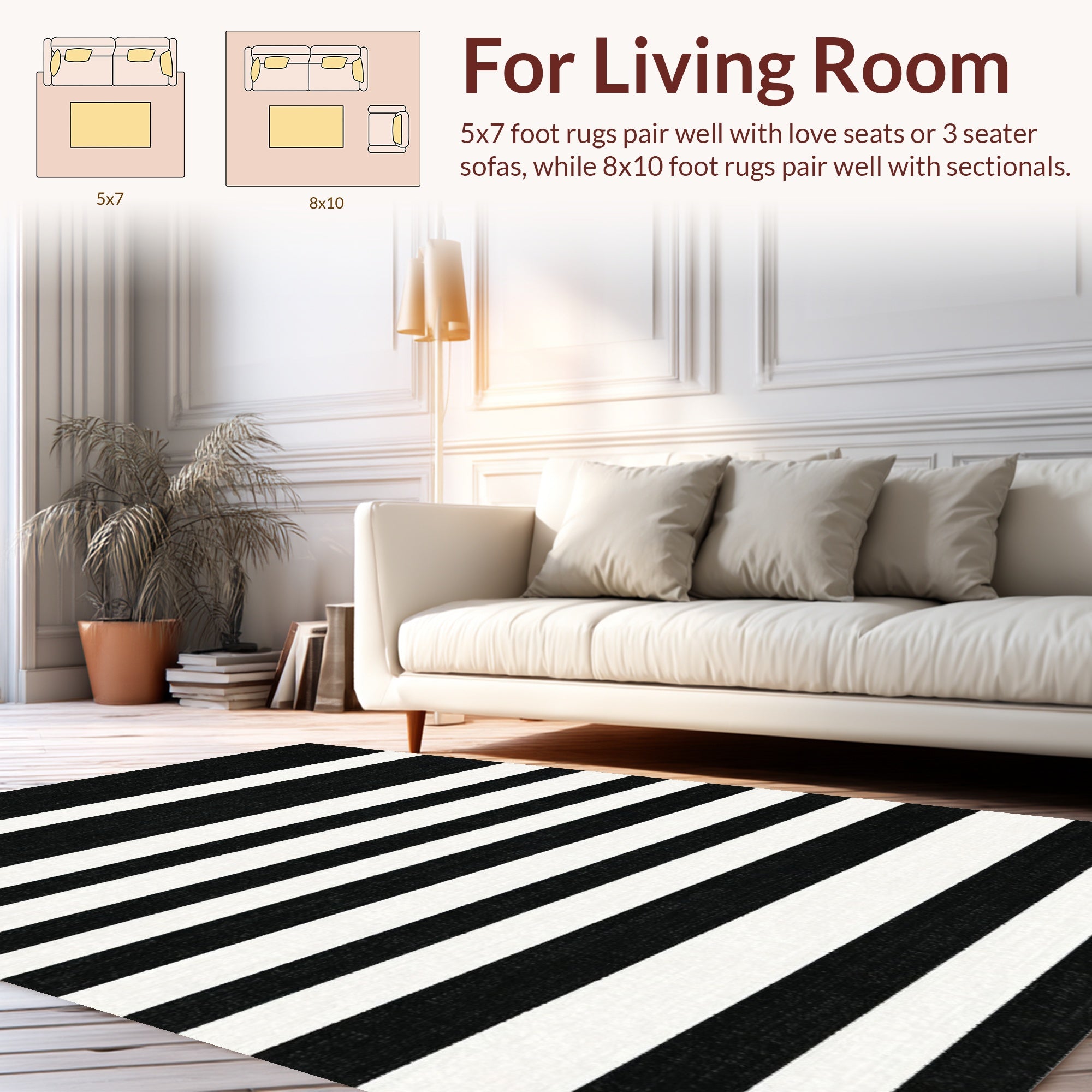 Ultra Soft Area Rug, Non Slip, Stain Resistant, Washable Area Rugs for Living Room, Bedroom, Geometric Rug Black and Whiteストライプ(Black) Overview: