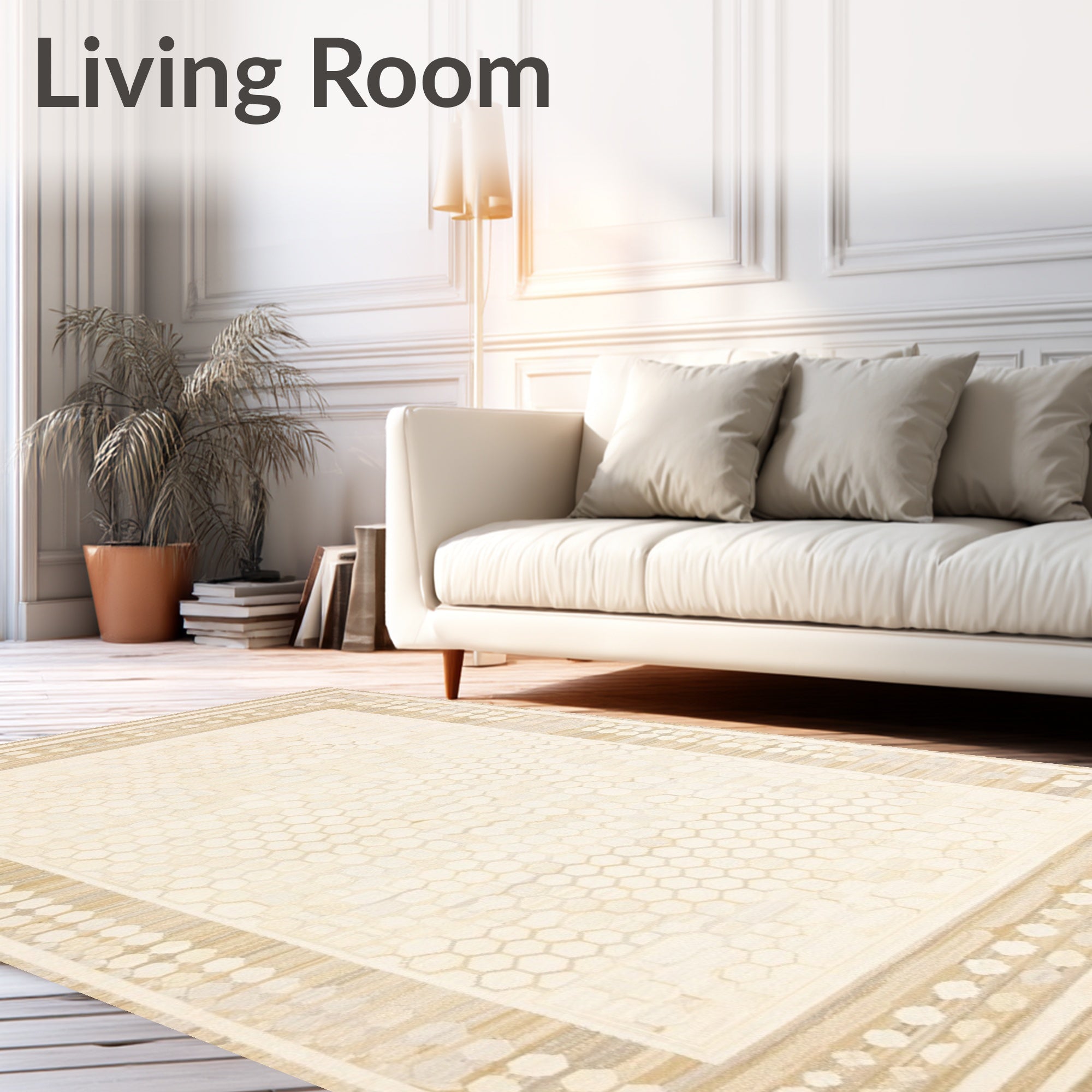 Ultra Soft Area Rug, Non Slip, Stain Resistant, Washable Area Rugs for Living Room, Bedroom, Geometric Semi Circle Door Featuring Interlocking Hexagon in Beige(Beige) Overview: