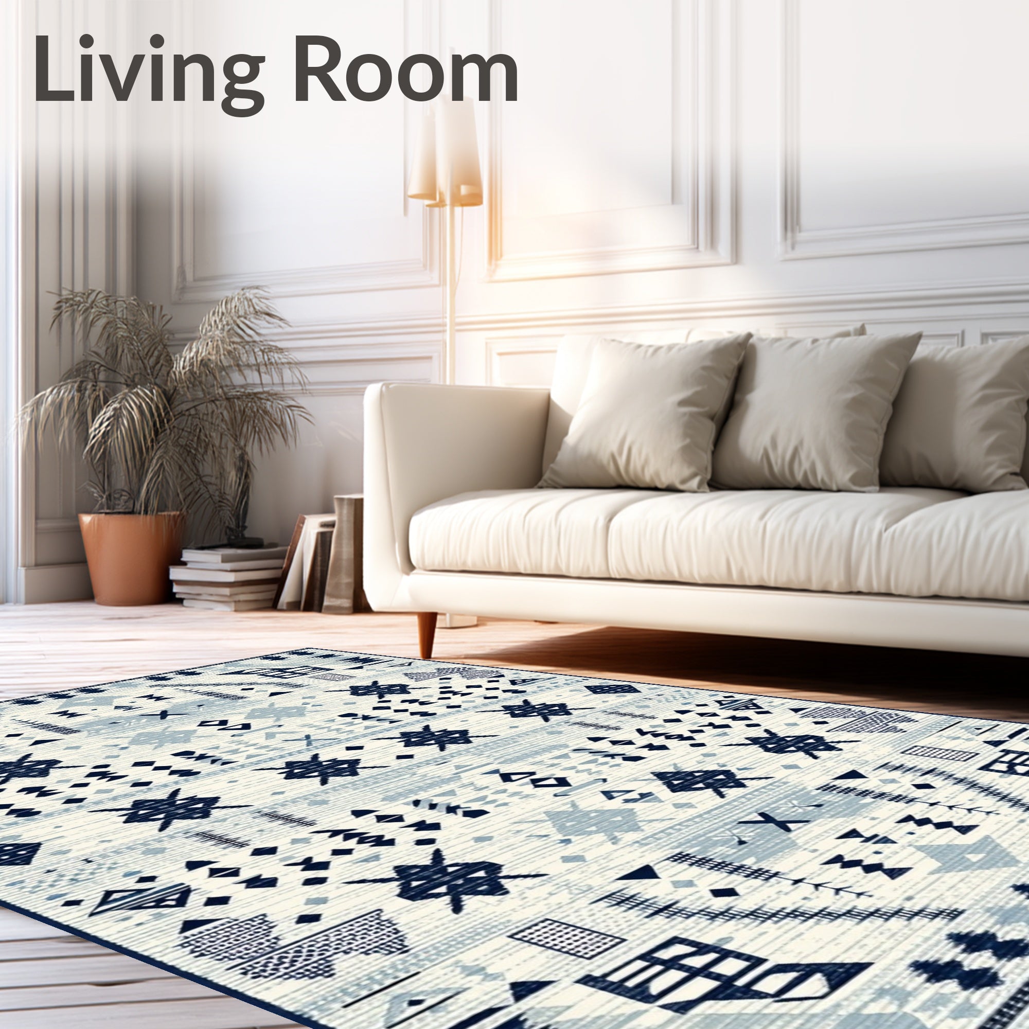 Ultra Soft Area Rug, Non Slip, Stain Resistant, Washable Area Rugs for Living Room, Bedroom, Geometric Spotted for(Blue) Overview: