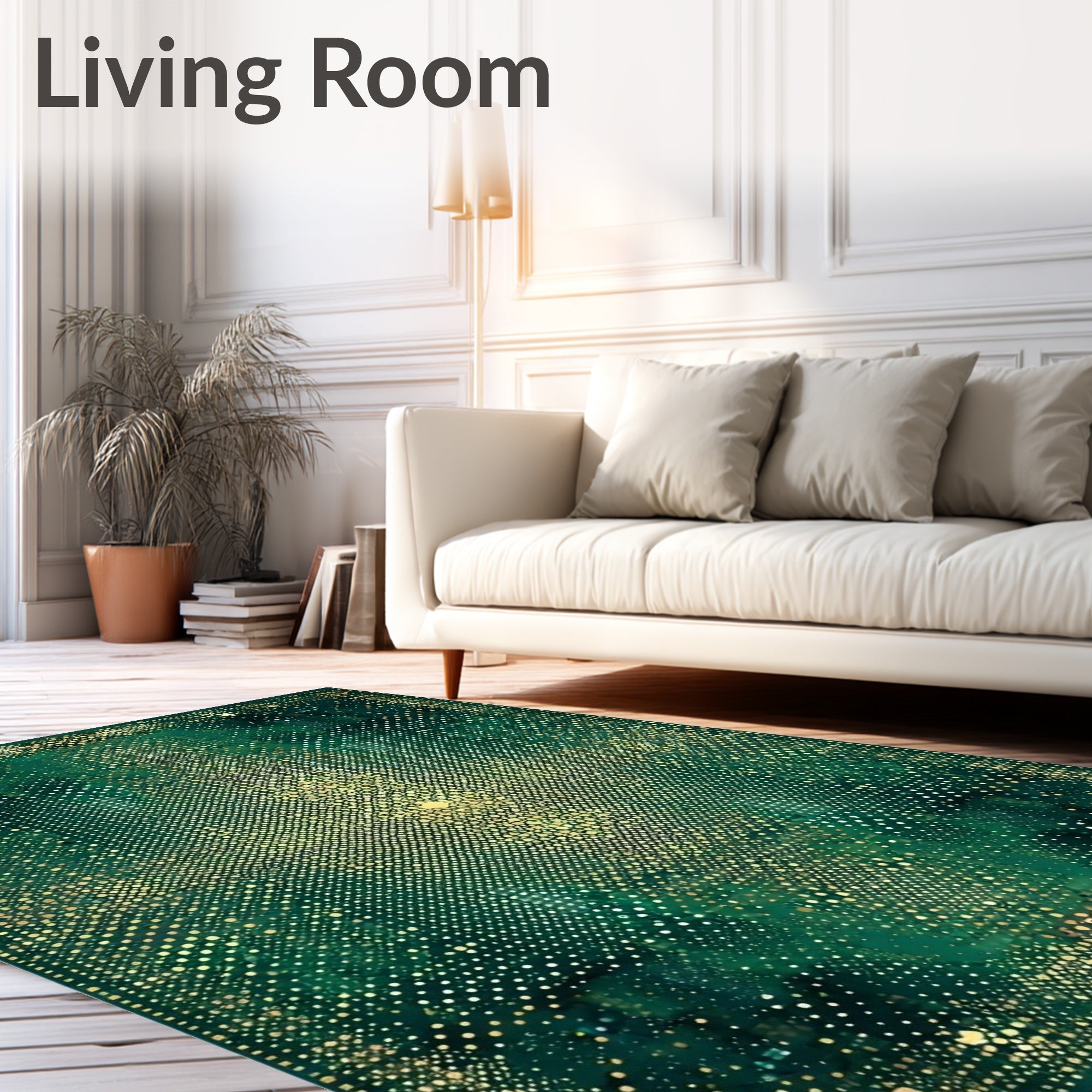 Ultra Soft Area Rug, Non Slip, Stain Resistant, Washable Area Rugs for Living Room, Bedroom, Geometric Spotted with Deep Green and Gold(Green) Overview: