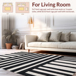 Ultra Soft Area Rug, Non Slip, Stain Resistant, Washable Area Rugs for Living Room, Bedroom, Geometric Stripe Area Rug: Contemporary Design(Black) Overview: