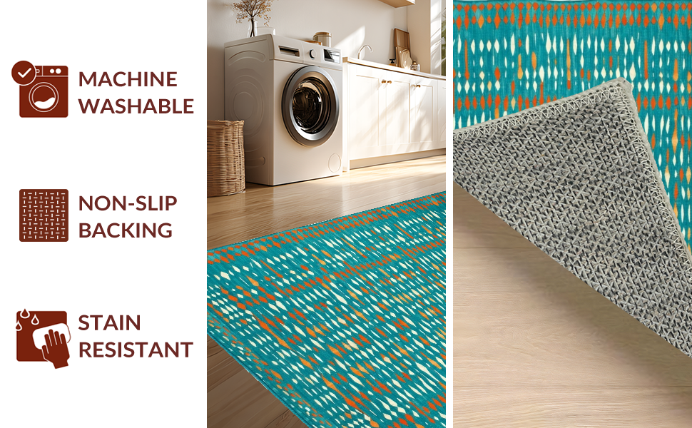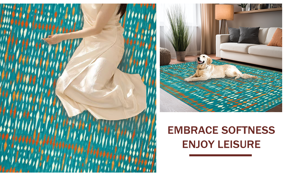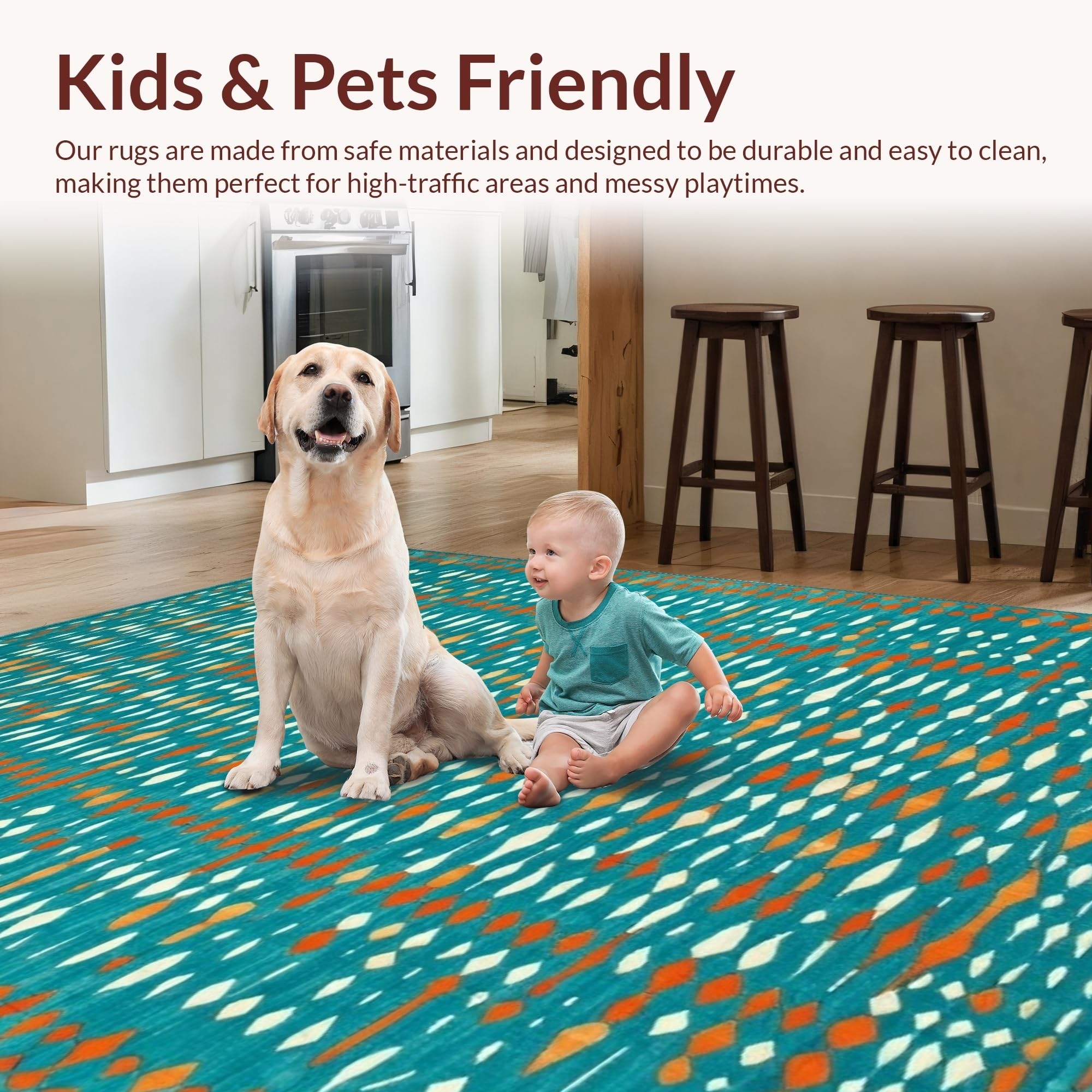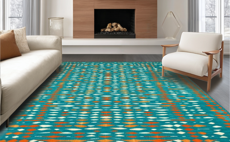 Ultra Soft Area Rug, Non Slip, Stain Resistant, Washable Area Rugs for Living Room, Bedroom, Geometric Teal Orange Fusion(Blue) Overview: