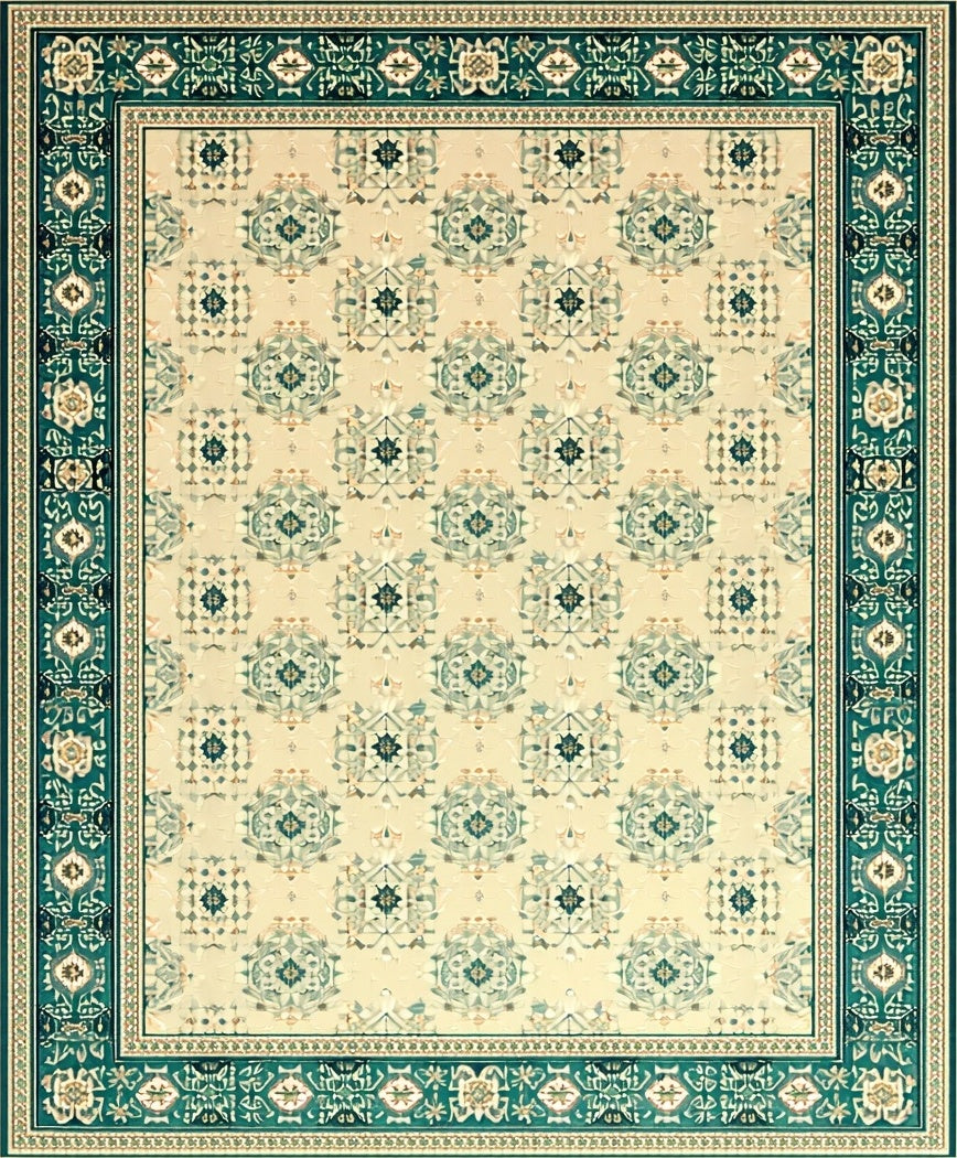 Geometric Vintage Area Beige & Teal(Beige)