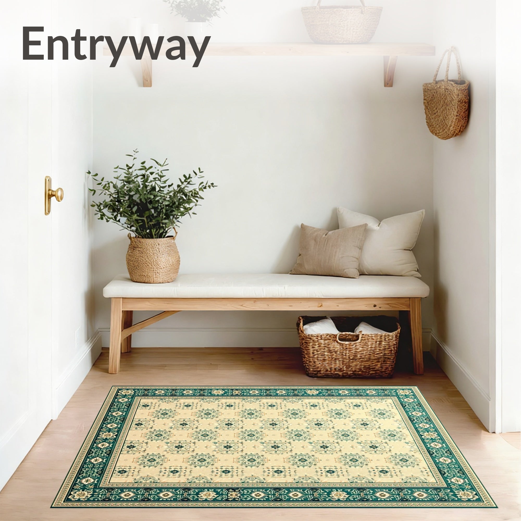 Ultra Soft Area Rug, Non Slip, Stain Resistant, Washable Area Rugs for Living Room, Bedroom, Geometric Vintage Area Beige & Teal(Beige) Overview: