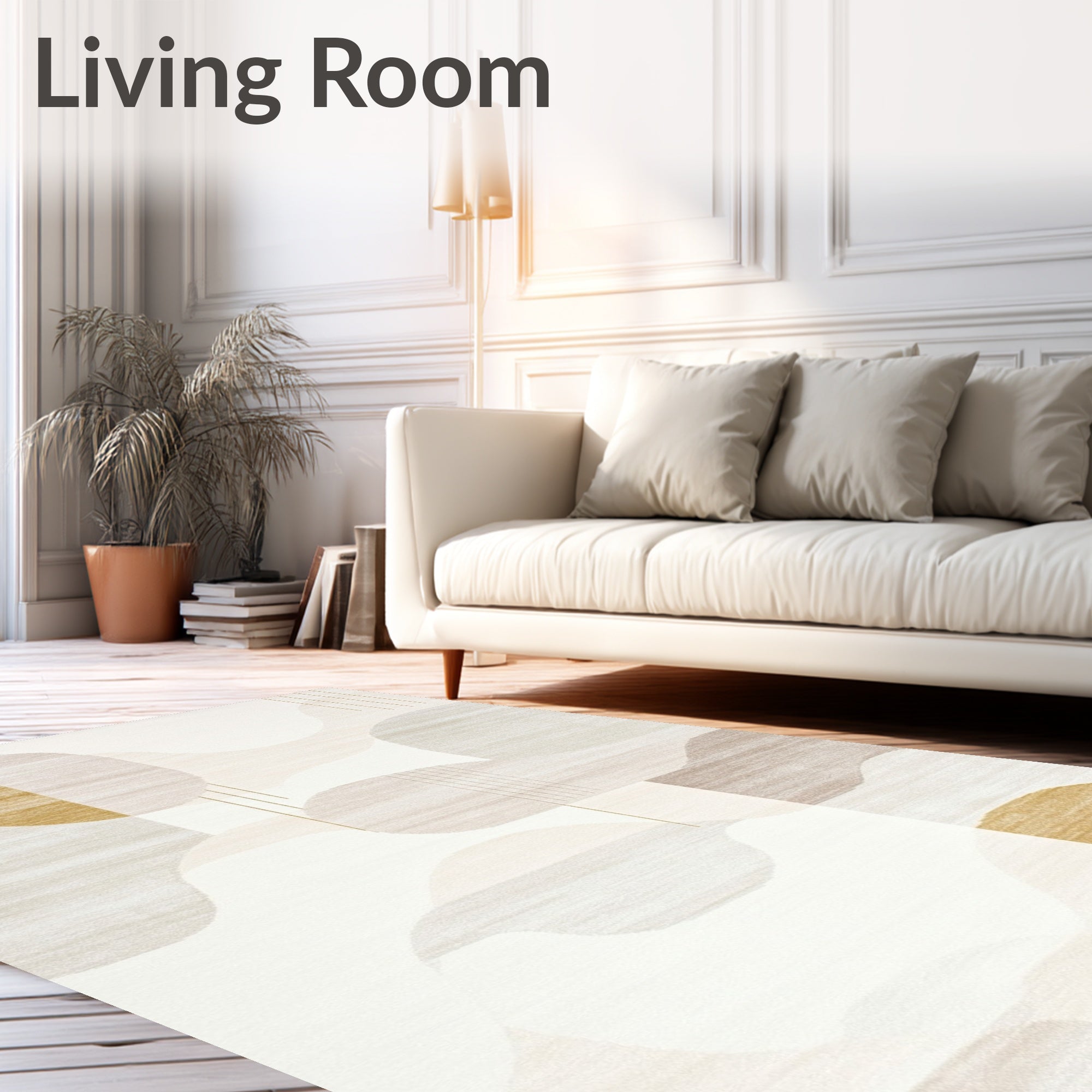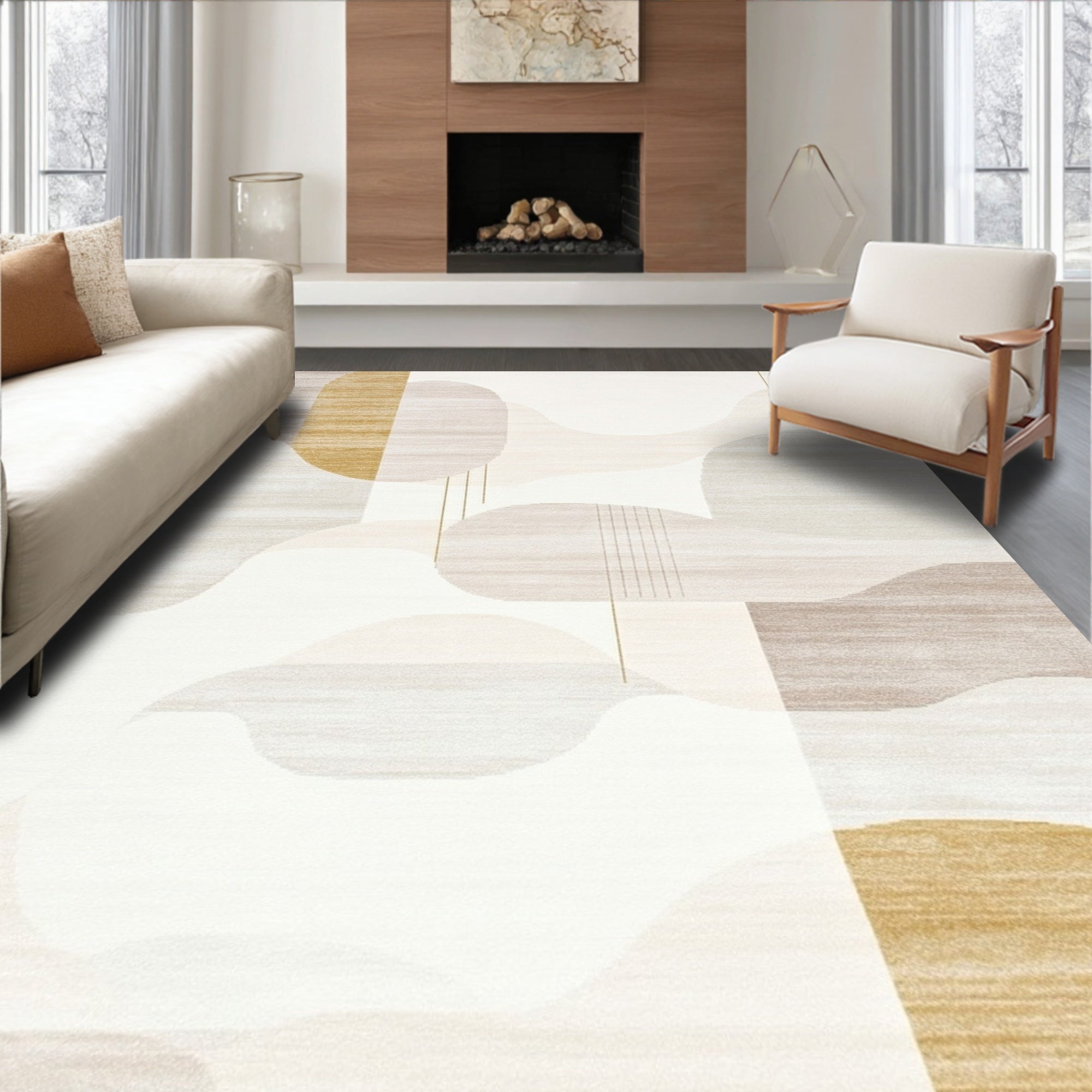 Ultra Soft Area Rug, Non Slip, Stain Resistant, Washable Area Rugs for Living Room, Bedroom, Geometric White Abstract Design(Beige) Overview: