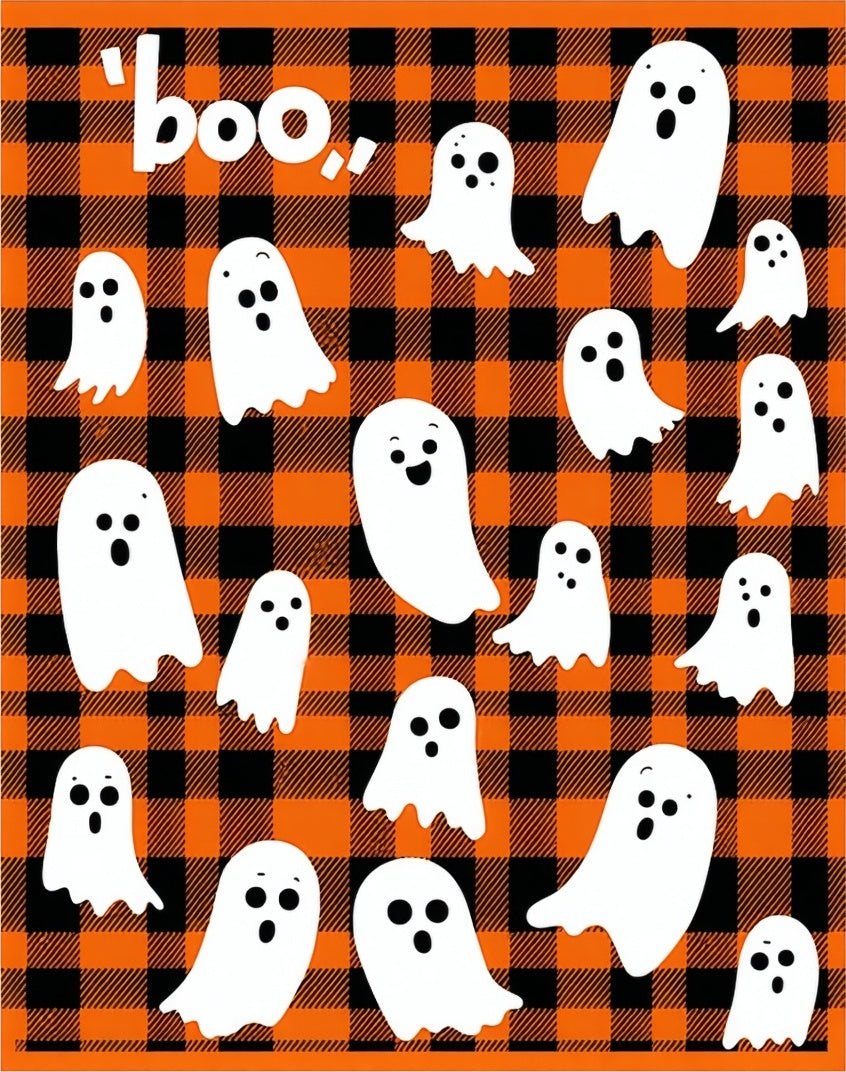 Ghostly Greetings Spooky Welcome & Plaid Layered Entry(Orange)