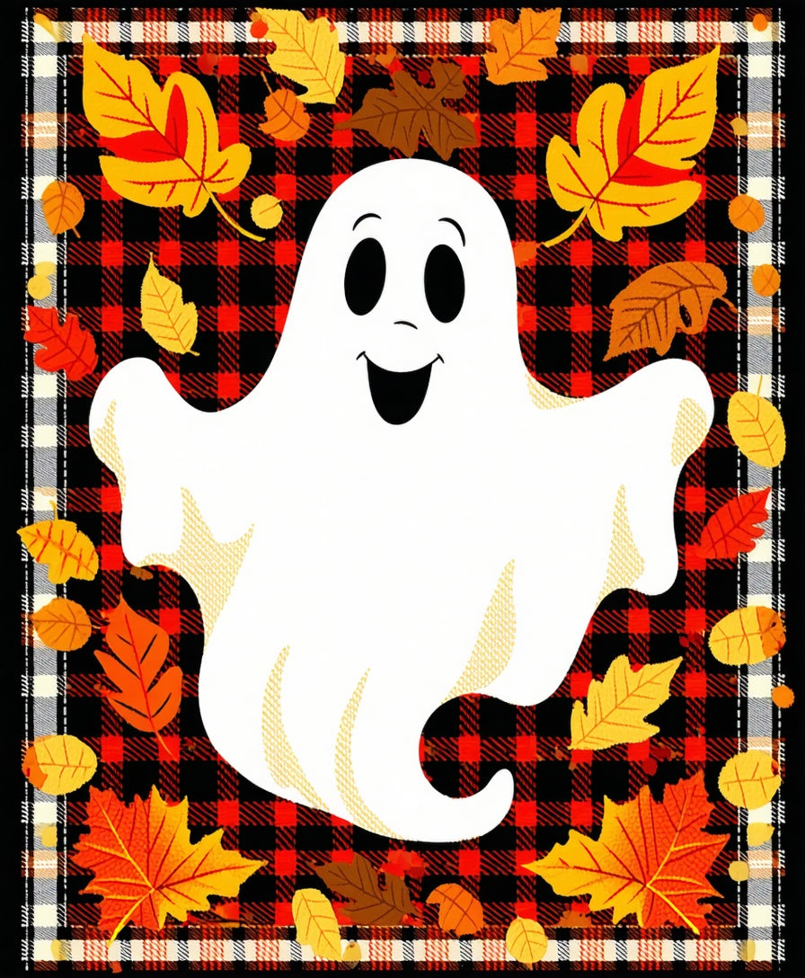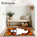 Ghostly Welcome Mat and Seasonal Area Rug Duo for Halloween(Red)