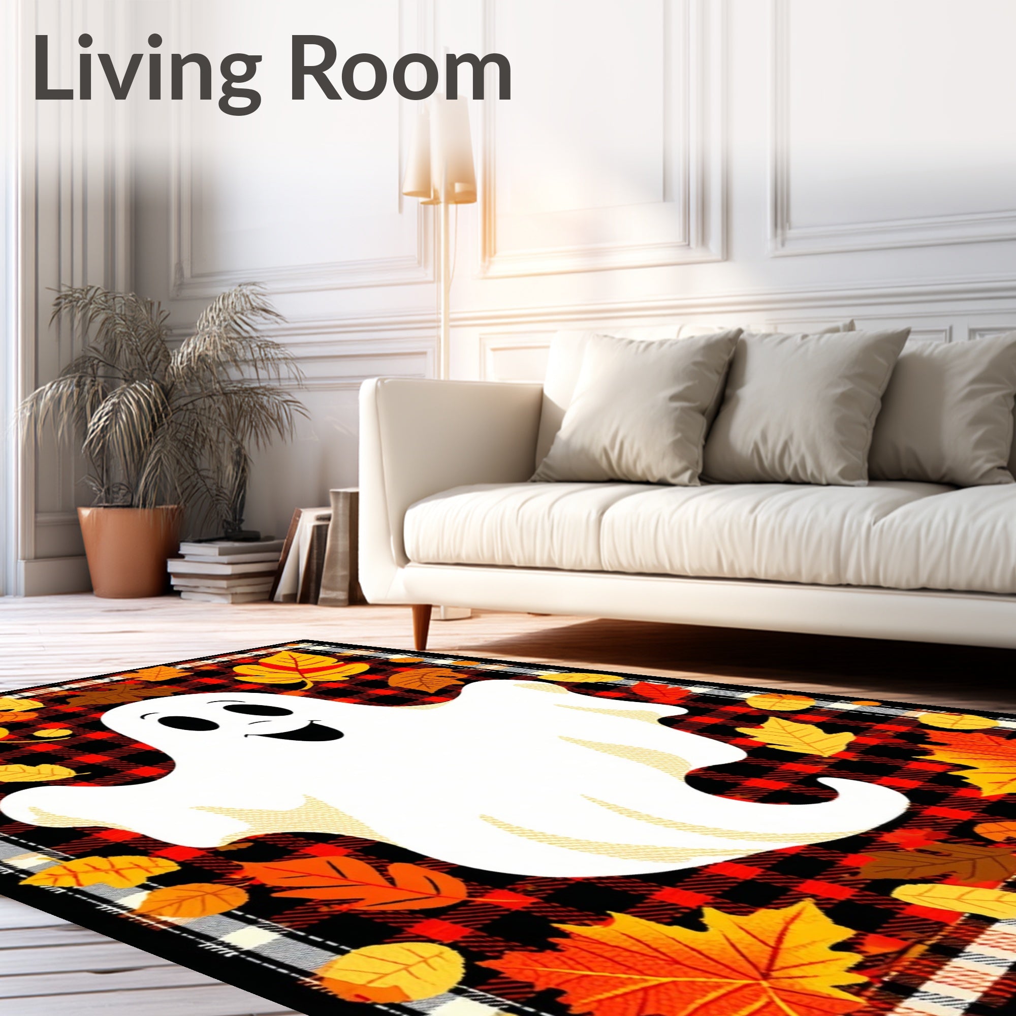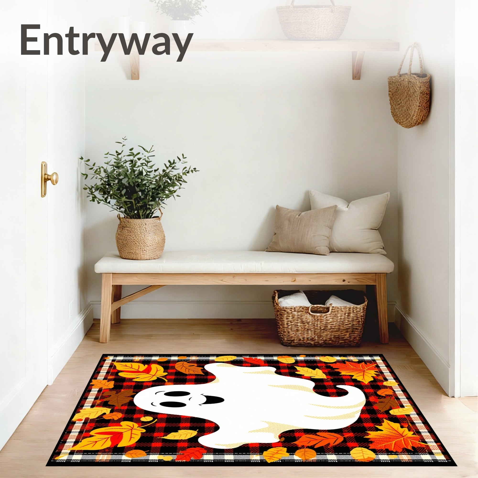 Ultra Soft Area Rug, Non Slip, Stain Resistant, Washable Area Rugs for Living Room, Bedroom, Ghostly Welcome Mat and Seasonal Area Rug Duo for Halloween(Red) Overview: