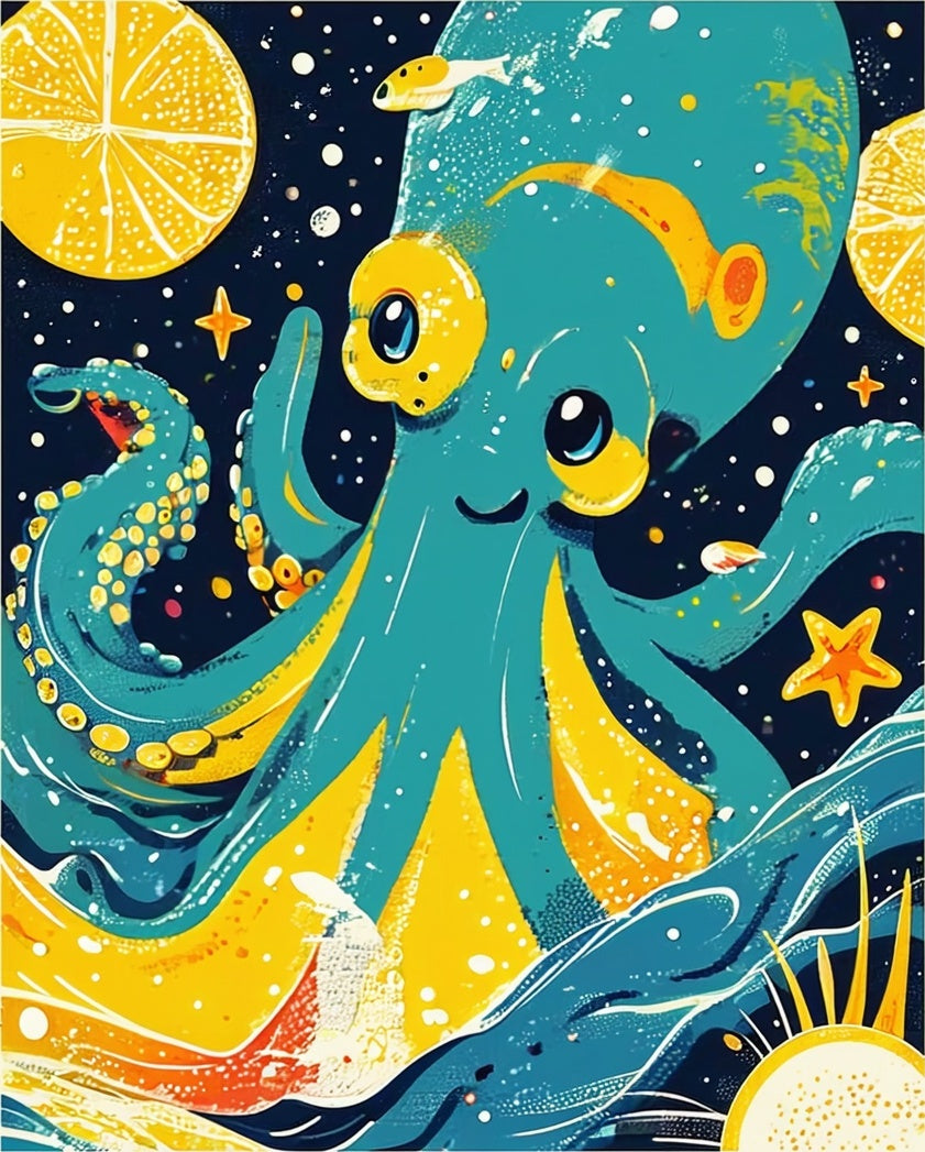 Giant Squid Graphic Sea Animal Decor Modern(Blue)