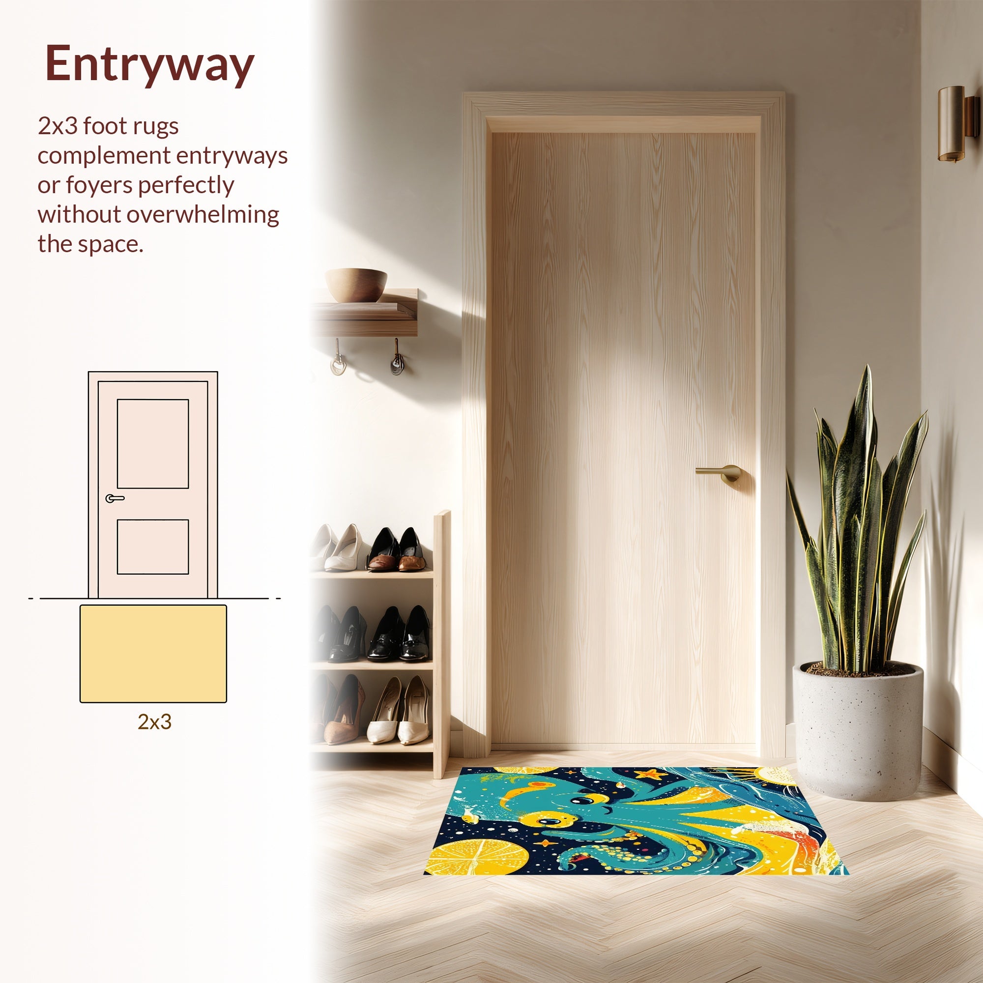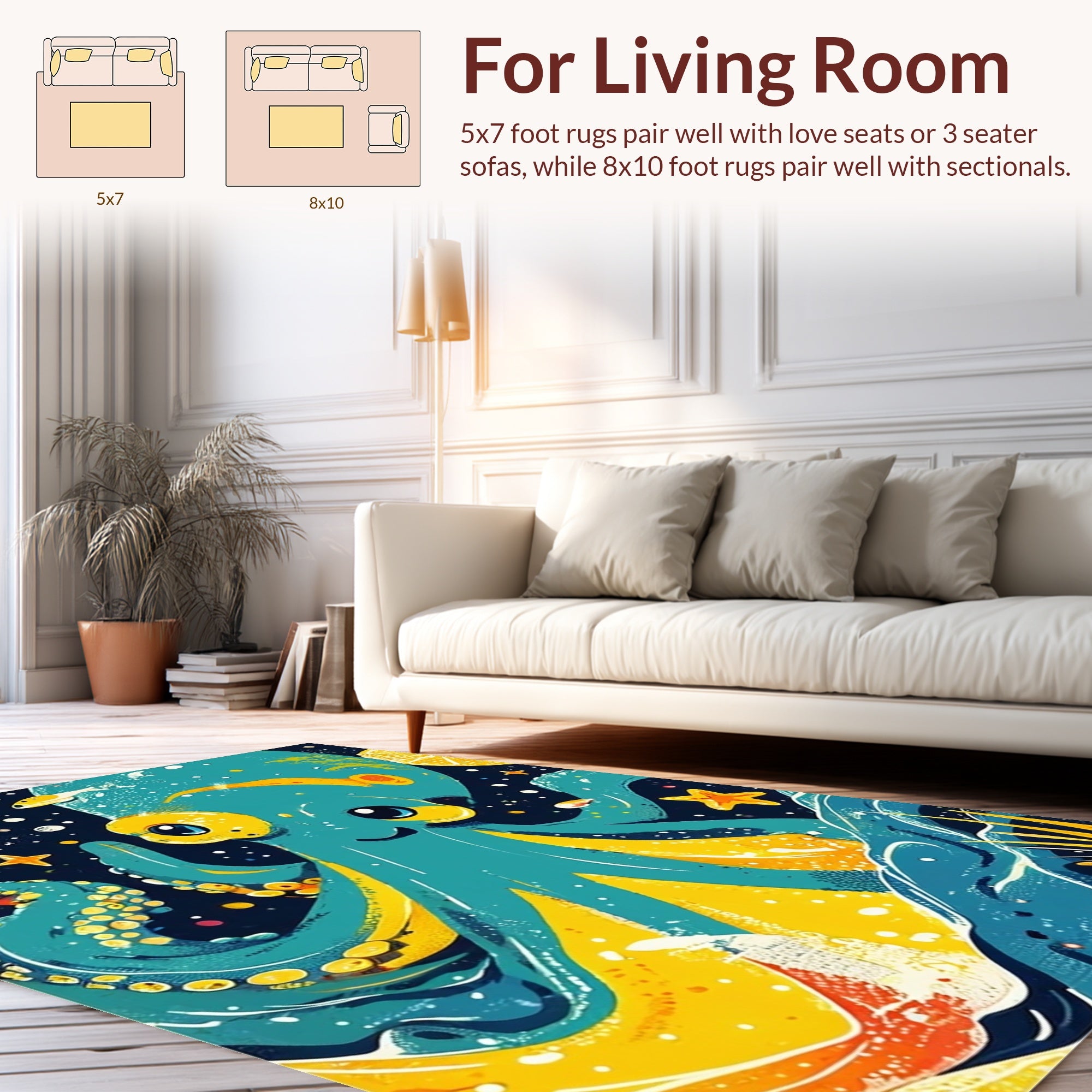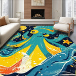 Ultra Soft Area Rug, Non Slip, Stain Resistant, Washable Area Rugs for Living Room, Bedroom, Giant Squid Graphic Rug - Sea Animal Decor Modern Carpet(Blue) Overview: