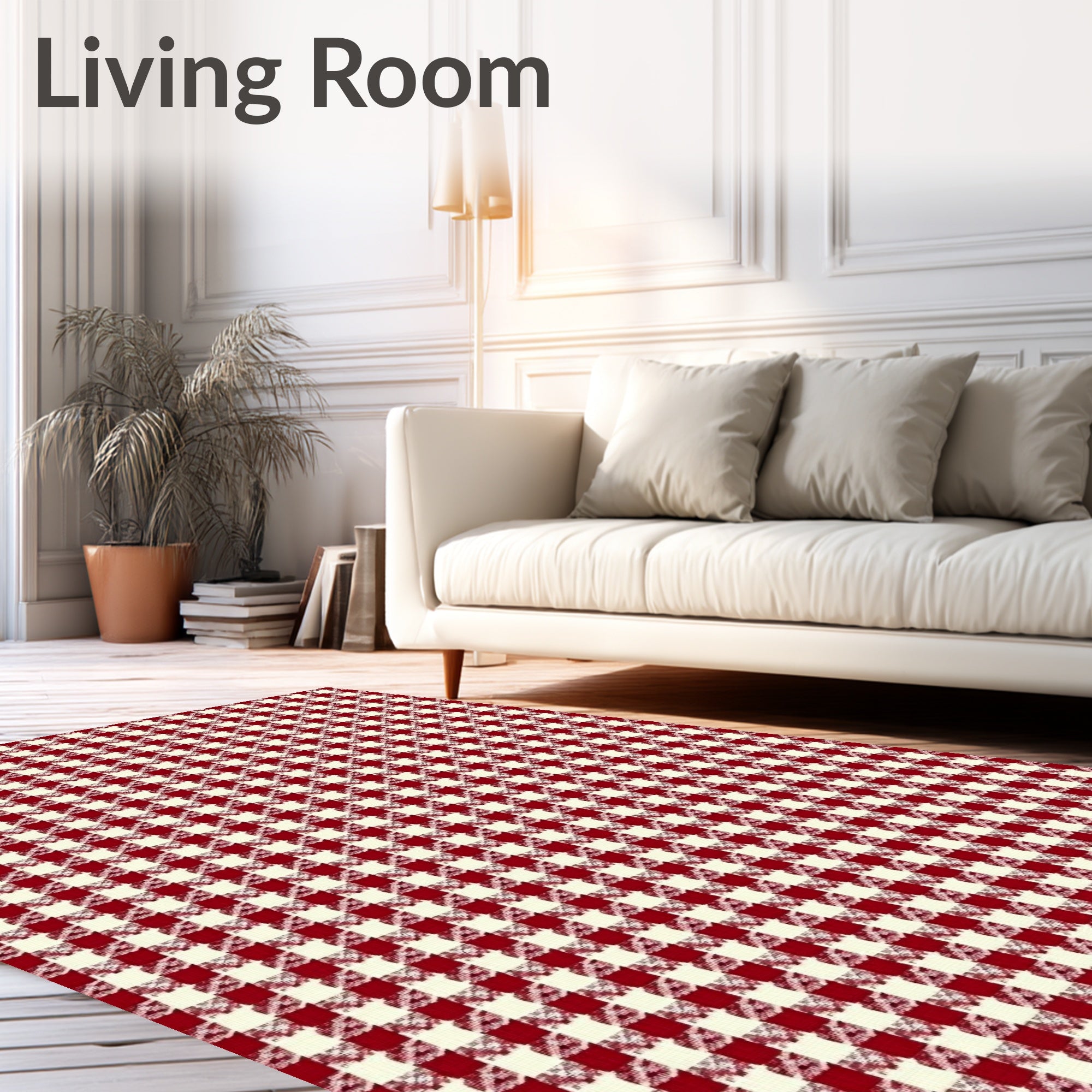 Ultra Soft Area Rug, Non Slip, Stain Resistant, Washable Area Rugs for Living Room, Bedroom, Gingham Checkered Heritage Seasonal Accent(Red) Overview: