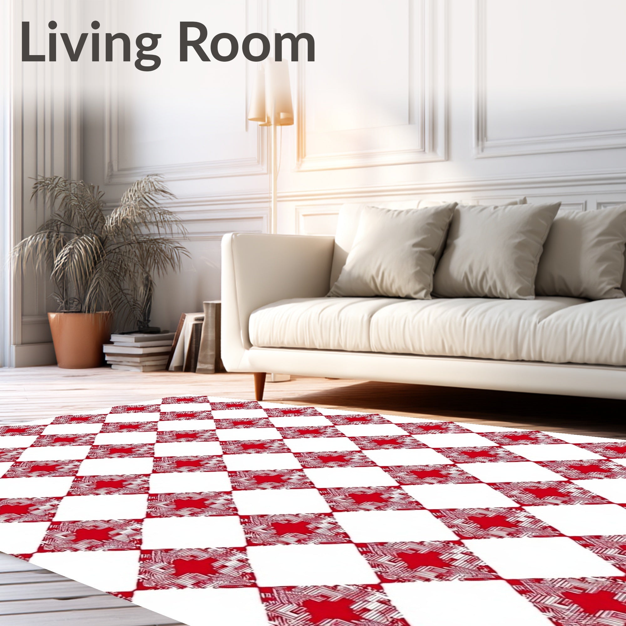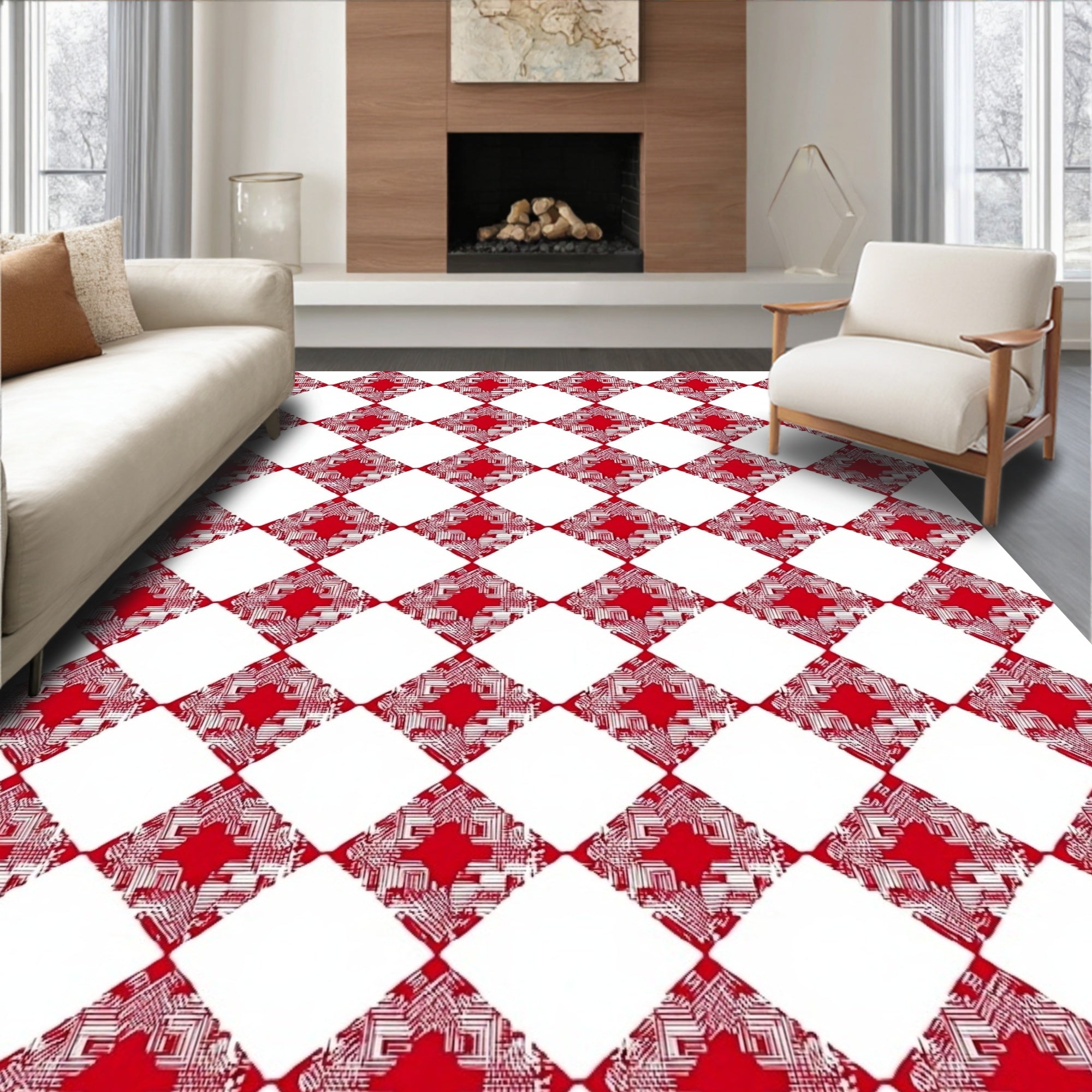 Ultra Soft Area Rug, Non Slip, Stain Resistant, Washable Area Rugs for Living Room, Bedroom, Gingham Entry featuring Traditional Plaid Motifs(Red) Overview: