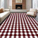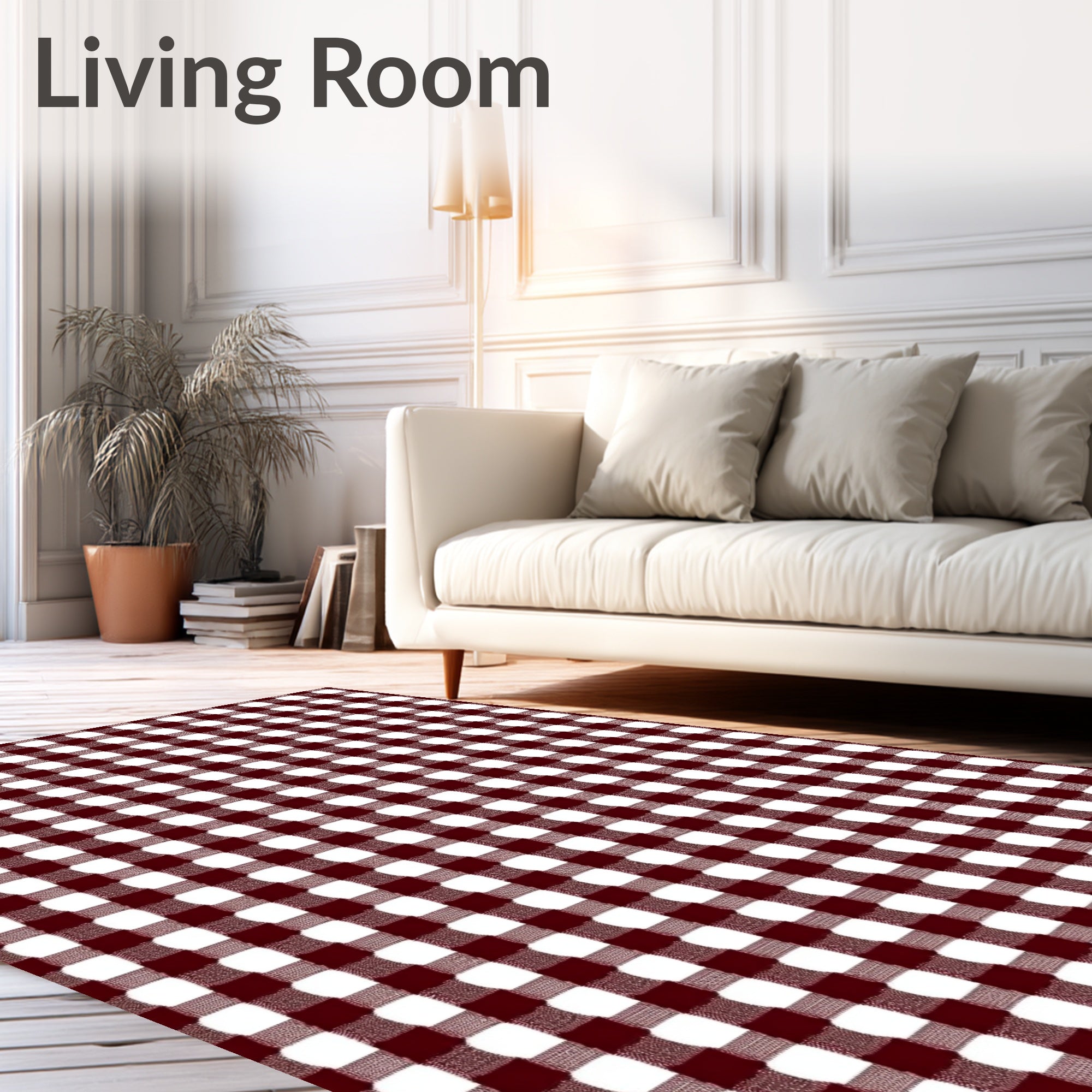 Ultra Soft Area Rug, Non Slip, Stain Resistant, Washable Area Rugs for Living Room, Bedroom, Gingham Style Entry with Vintage Checkerboard Motif(Red) Overview: