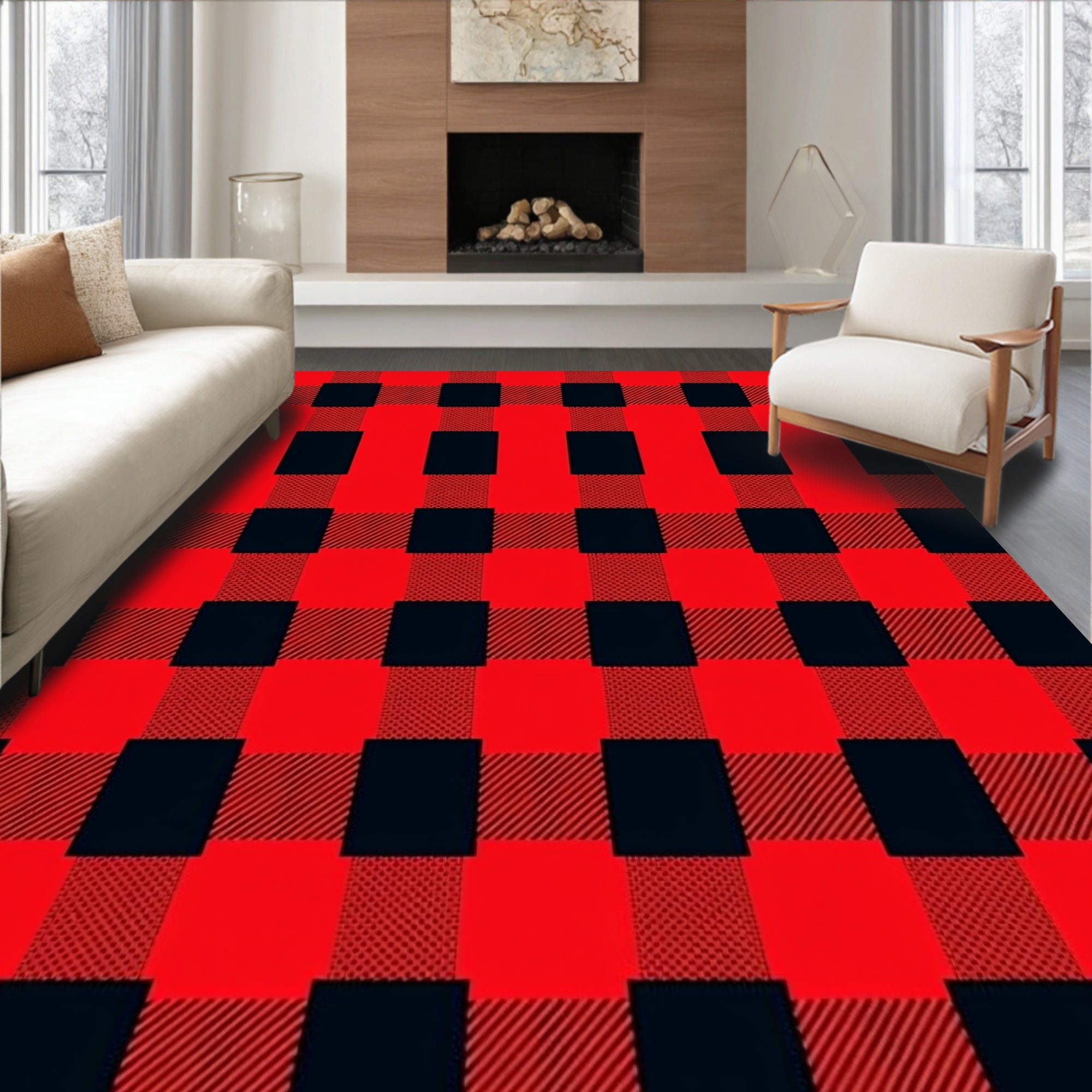 Ultra Soft Area Rug, Non Slip, Stain Resistant, Washable Area Rugs for Living Room, Bedroom, Gingham Style Floor Covering with Traditional Checkerboard Motif(Red) Overview: