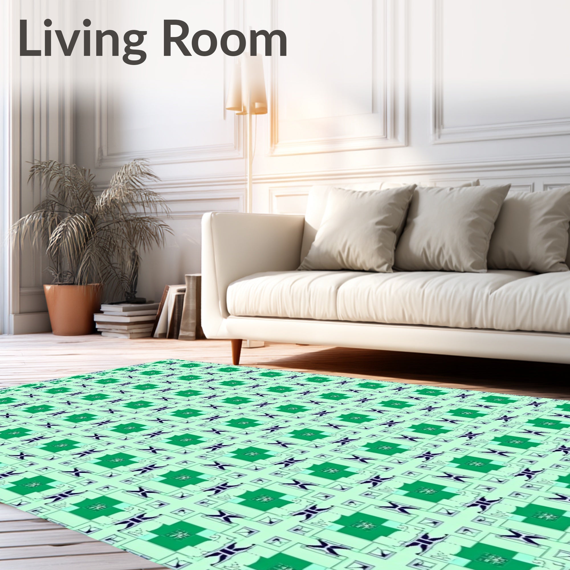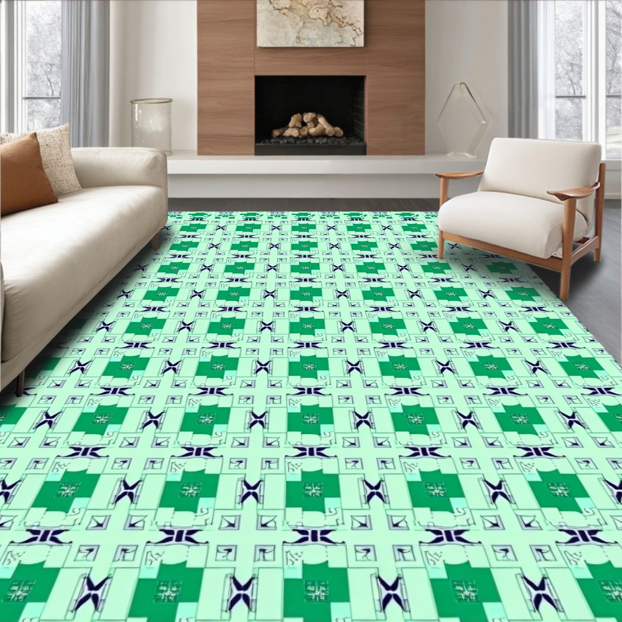 Ultra Soft Area Rug, Non Slip, Stain Resistant, Washable Area Rugs for Living Room, Bedroom, Gingham Trellis Verdant Basketweave Crisscross Jade Mosaic(Green) Overview: