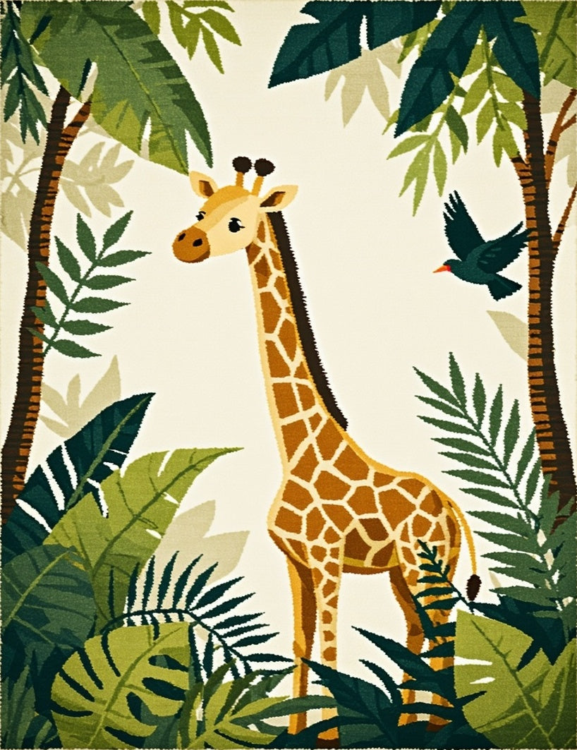 Giraffe Playtime Area with Jungle for Kids Rooms(Beige)