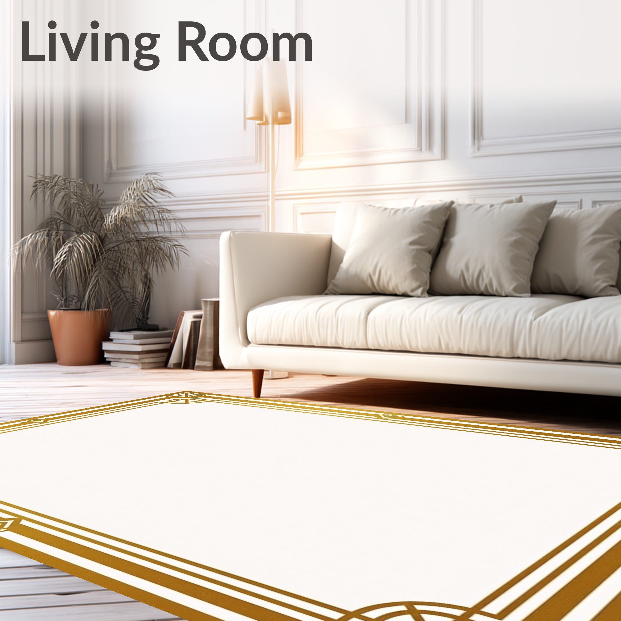 Ultra Soft Area Rug, Non Slip, Stain Resistant, Washable Area Rugs for Living Room, Bedroom, Glam Vintage Motif(Gold) Overview: