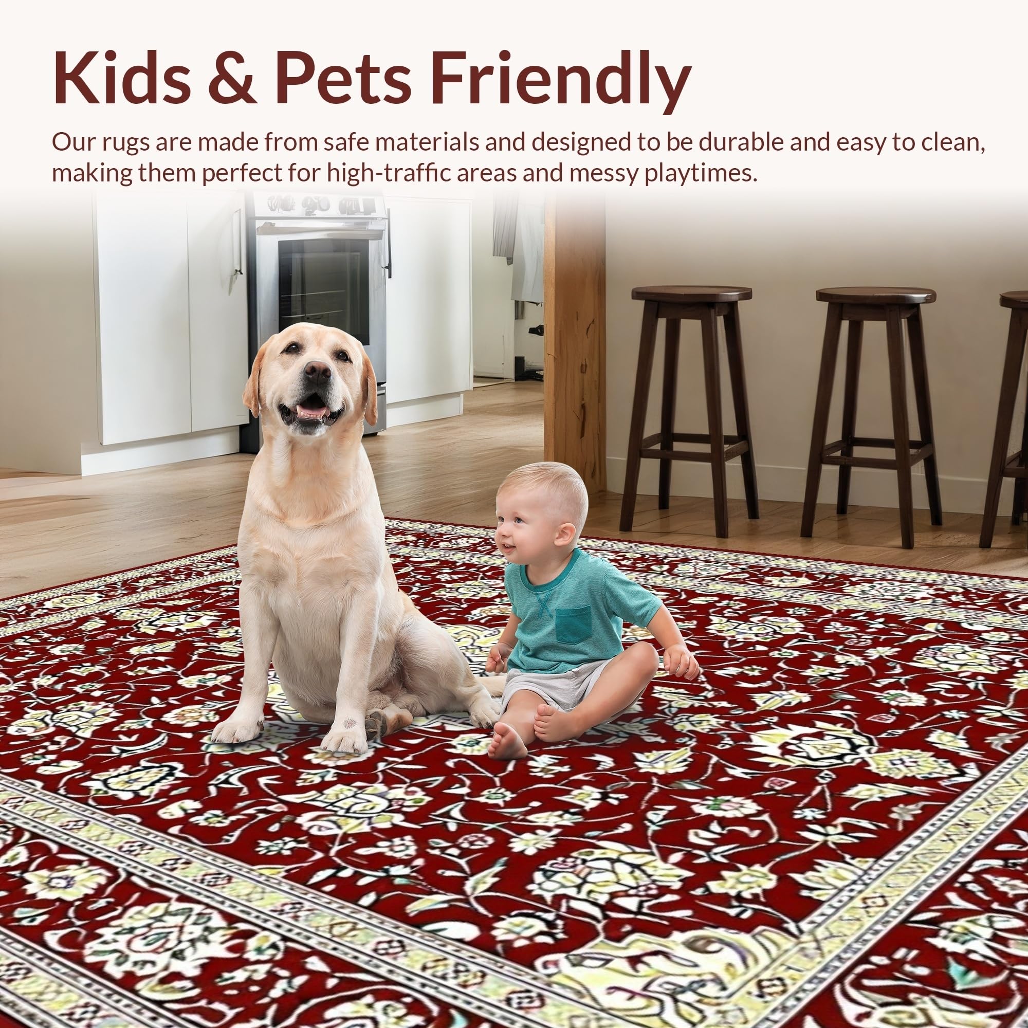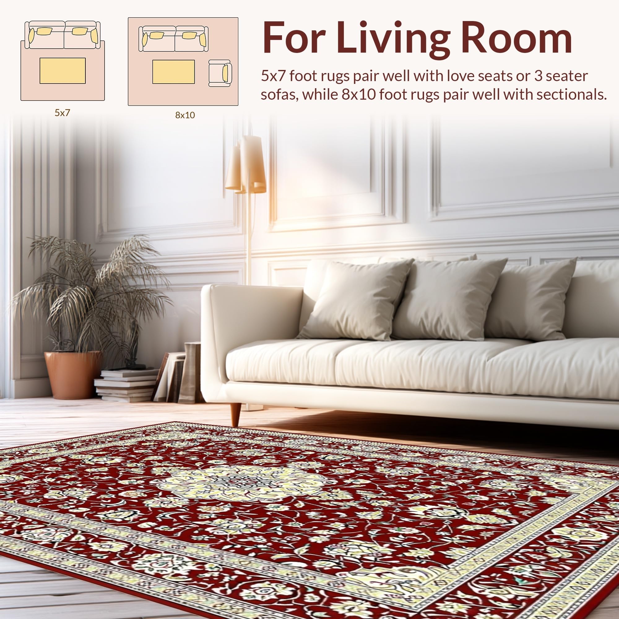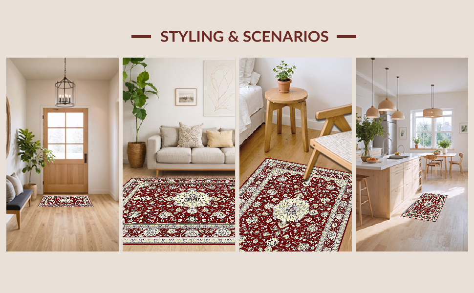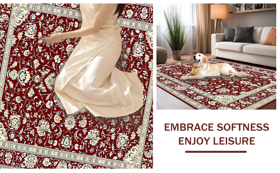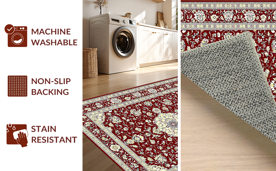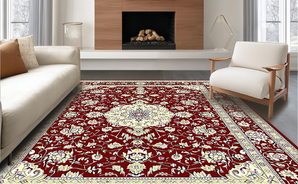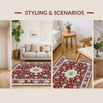 Ultra Soft Area Rug, Non Slip, Stain Resistant, Washable Area Rugs for Living Room, Bedroom, Glamorous Antique Aesthetic Medallion(Red) Overview: