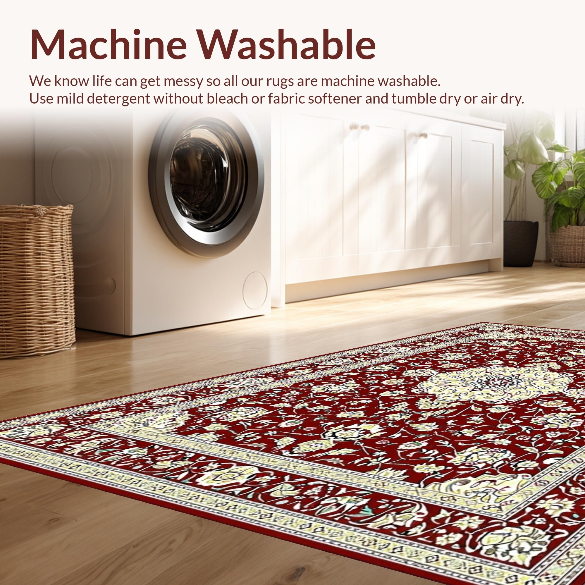 - Machine Washable: Our rugs can be easily thrown in the wash machine.