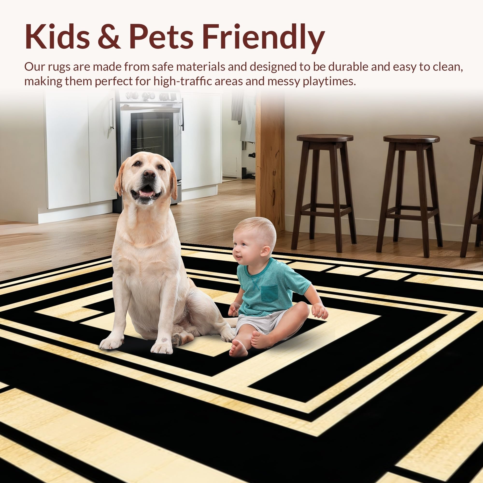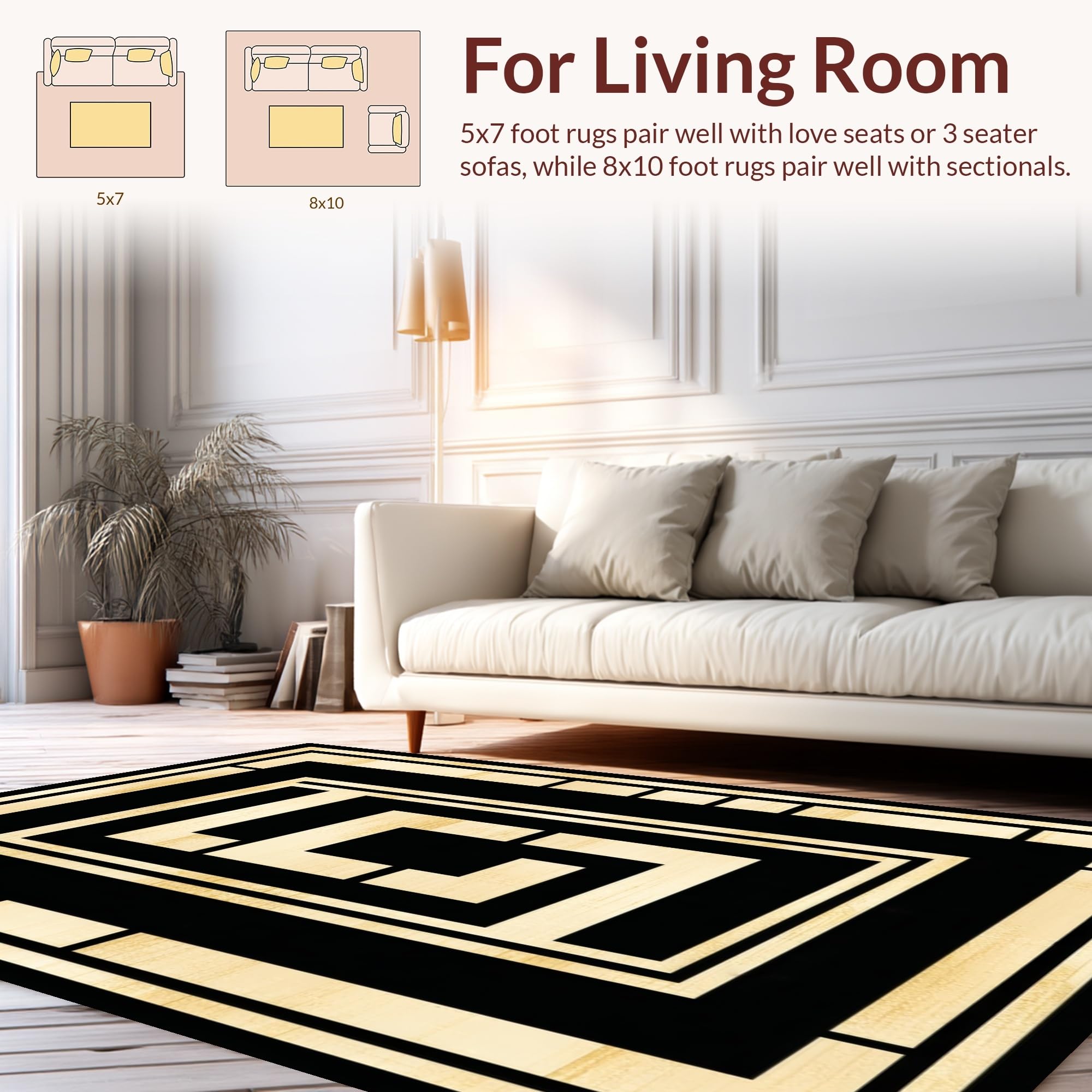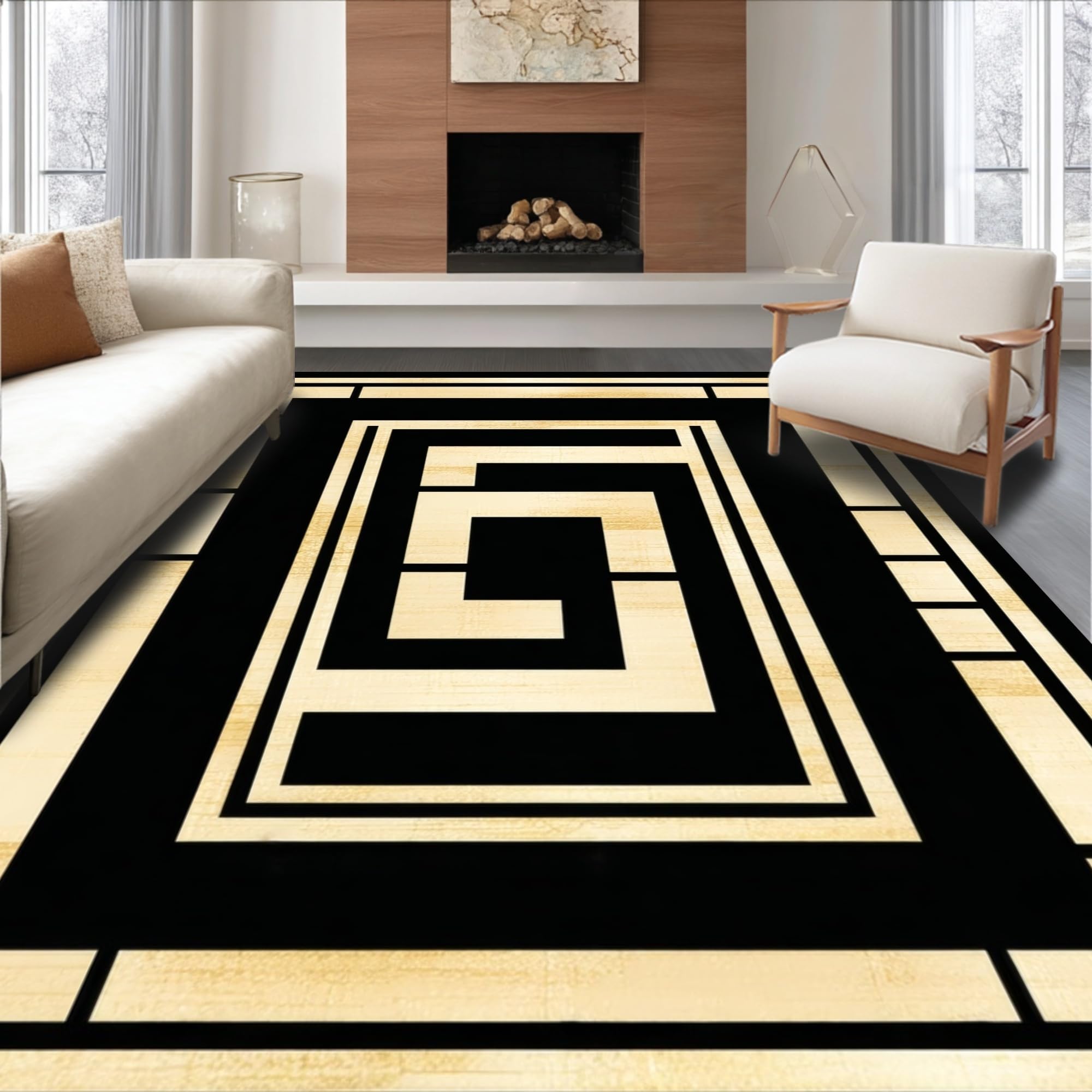 Ultra Soft Area Rug, Non Slip, Stain Resistant, Washable Area Rugs for Living Room, Bedroom, Glamorous Black Gold Geometric Design(Gold) Overview: