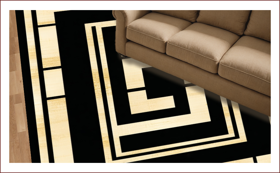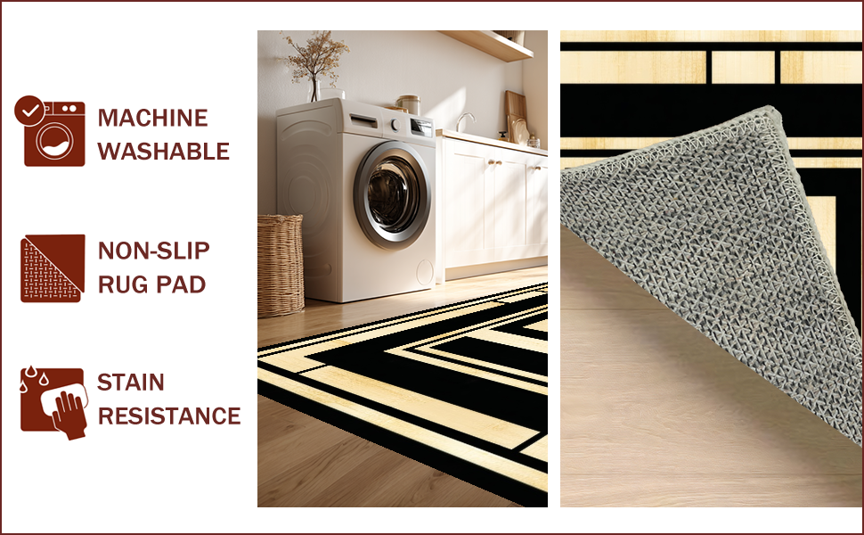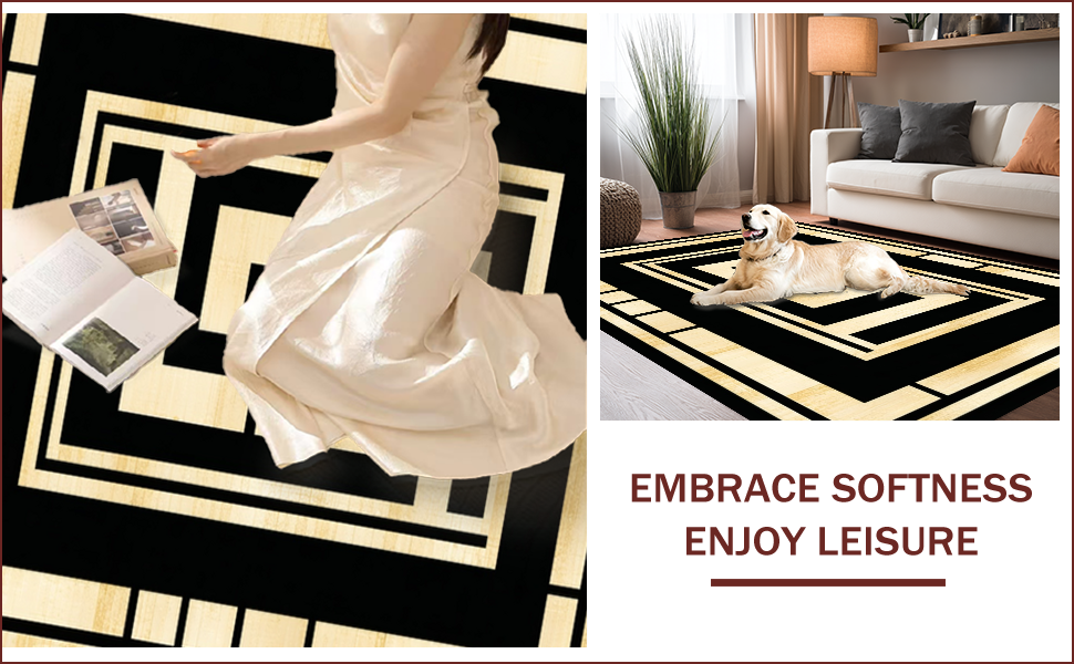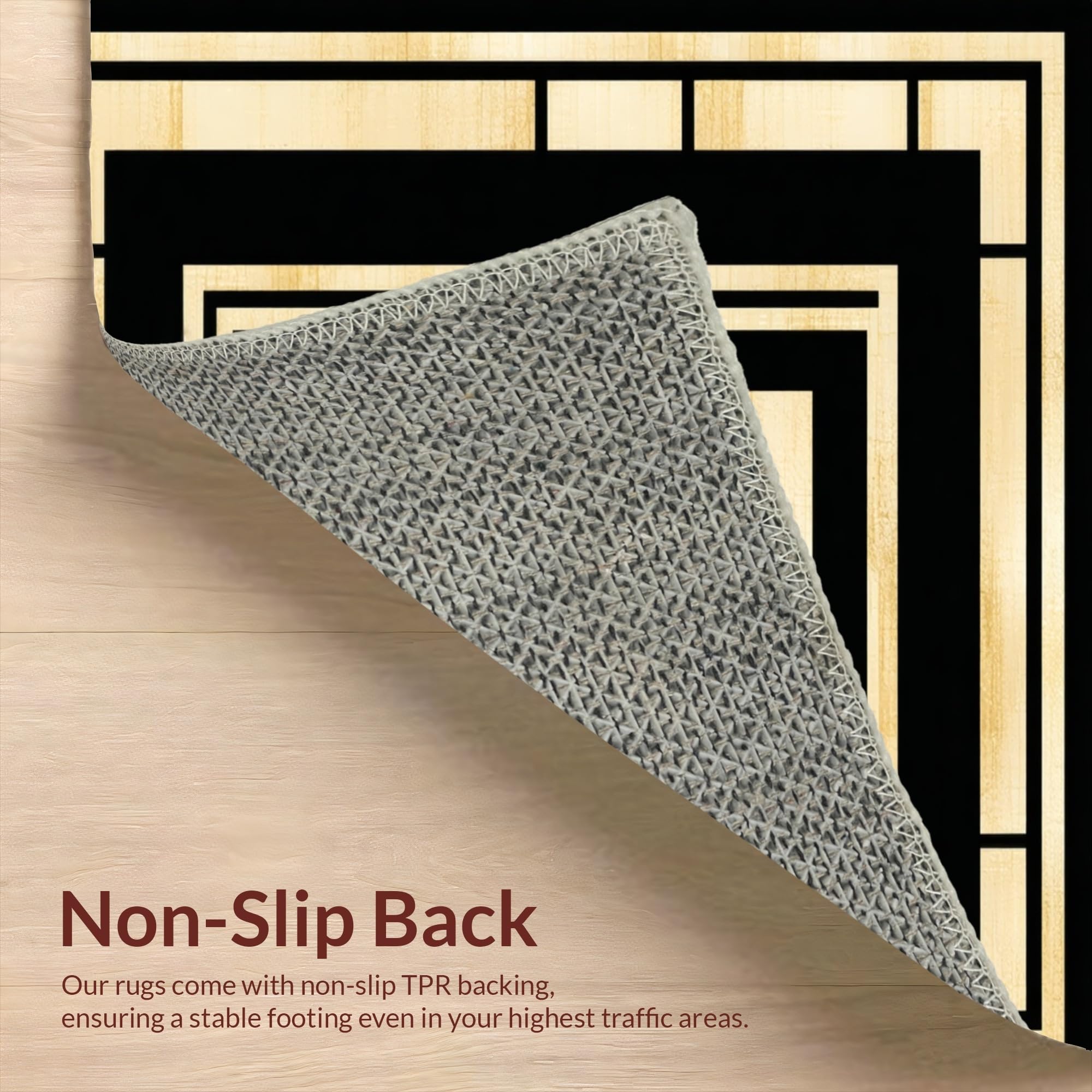 Ultra Soft Area Rug, Non Slip, Stain Resistant, Washable Area Rugs for Living Room, Bedroom, Glamorous Black Gold Geometric Design(Gold) Overview: