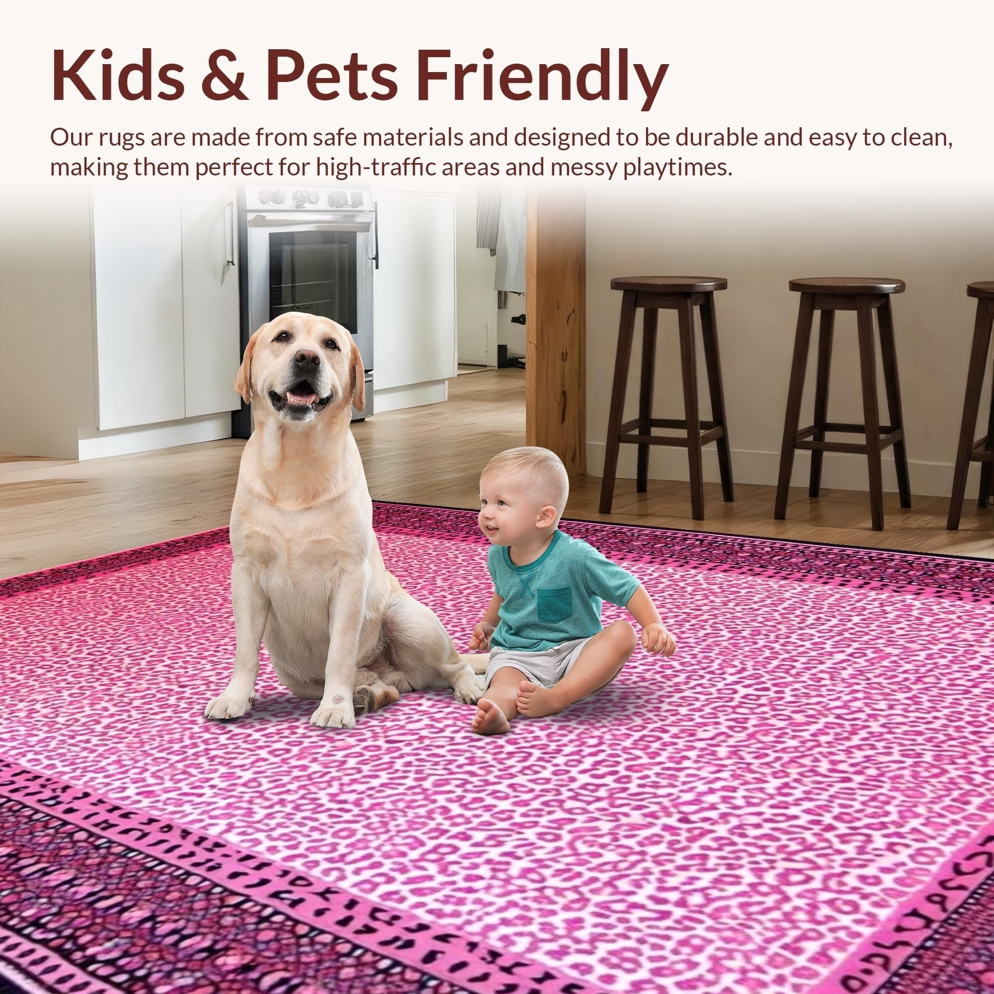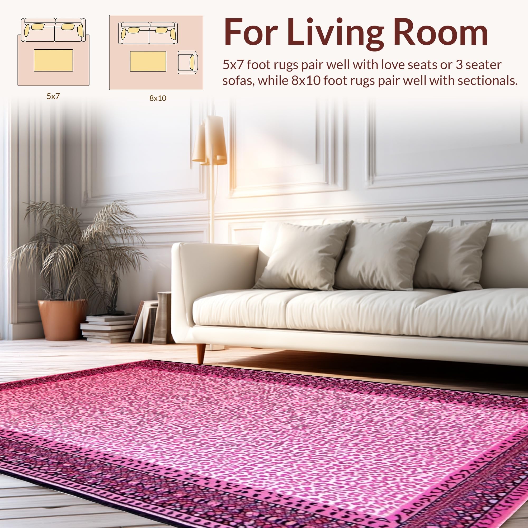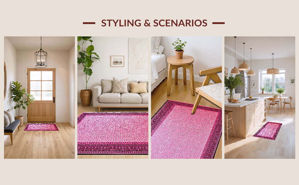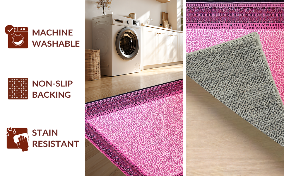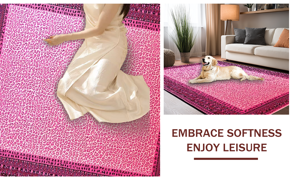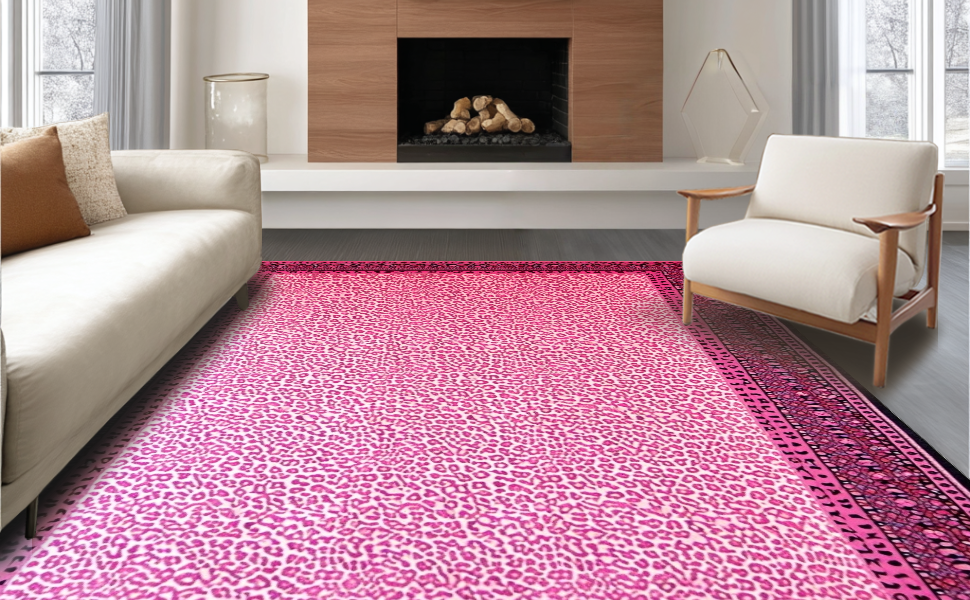 Ultra Soft Area Rug, Non Slip, Stain Resistant, Washable Area Rugs for Living Room, Bedroom, Glamorous Pink Cheetah Visual Appeal(Pink) Overview: