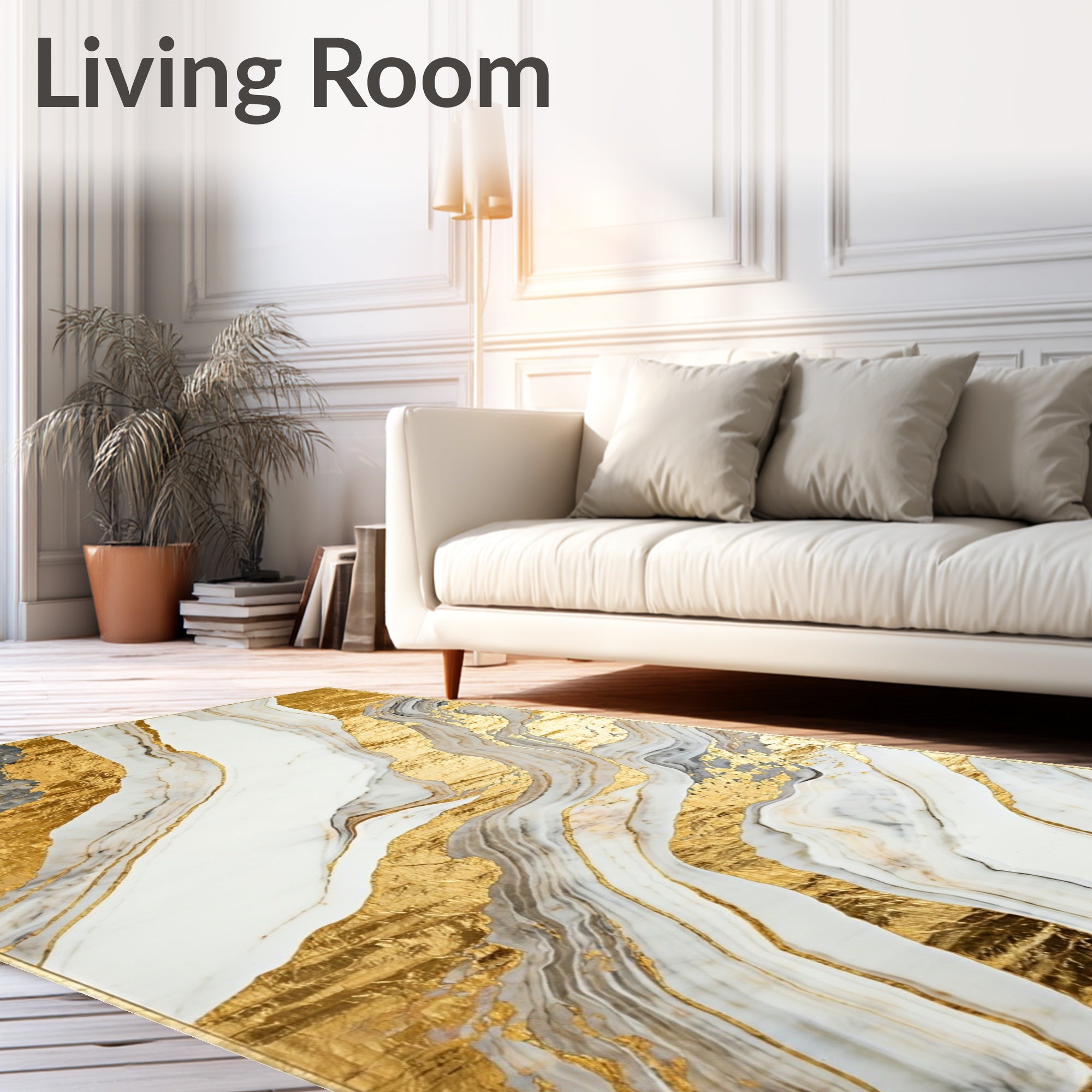 Ultra Soft Area Rug, Non Slip, Stain Resistant, Washable Area Rugs for Living Room, Bedroom, Gold Abstract Marble Geometric Indoor Area(White) Overview:
