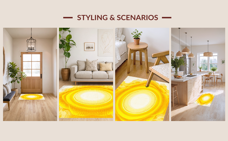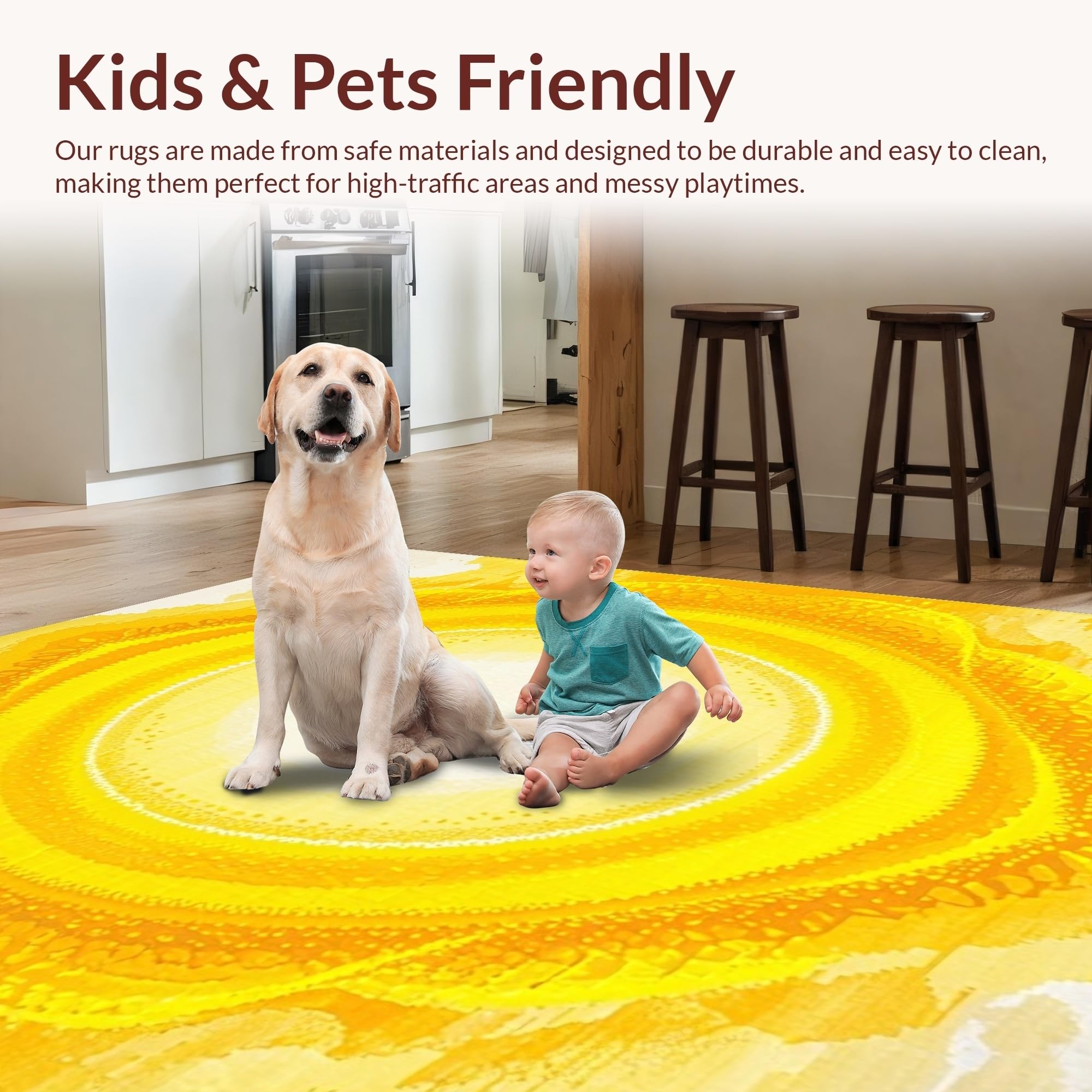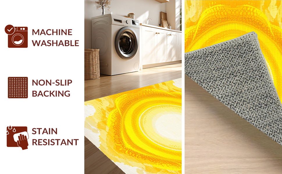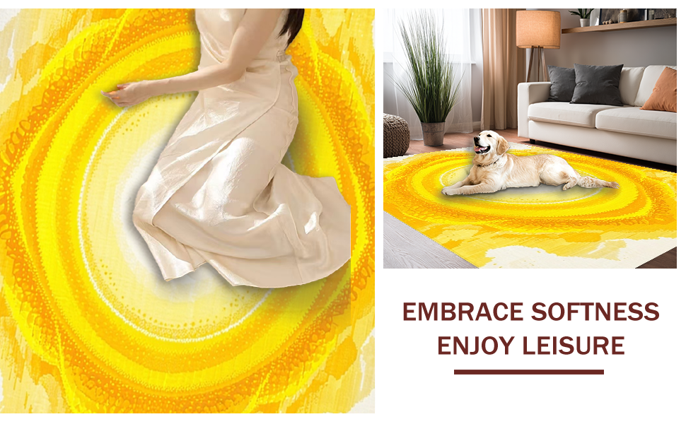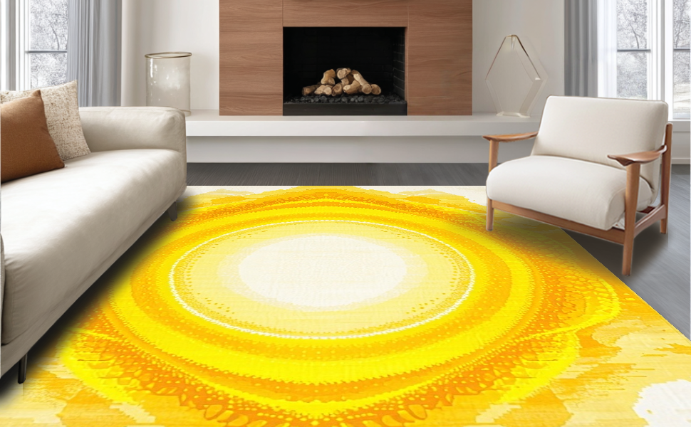 Ultra Soft Area Rug, Non Slip, Stain Resistant, Washable Area Rugs for Living Room, Bedroom, Golden Hues Modern Harmony(Yellow) Overview: