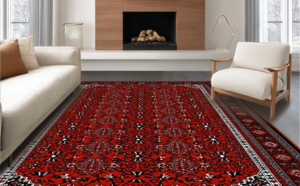 Ultra Soft Area Rug, Non Slip, Stain Resistant, Washable Area Rugs for Living Room, Bedroom, Gothic Abstract Distressed Aesthetic(Red) Overview: