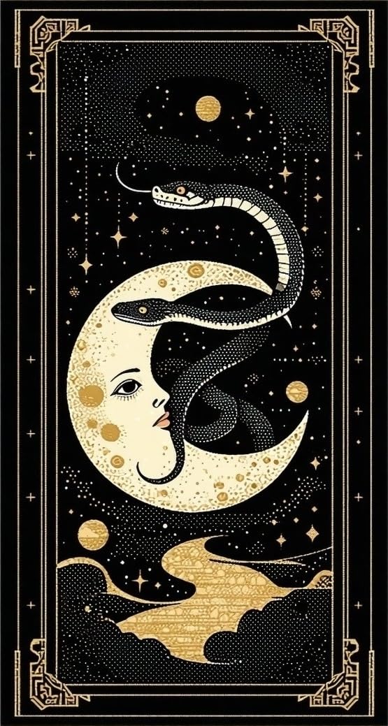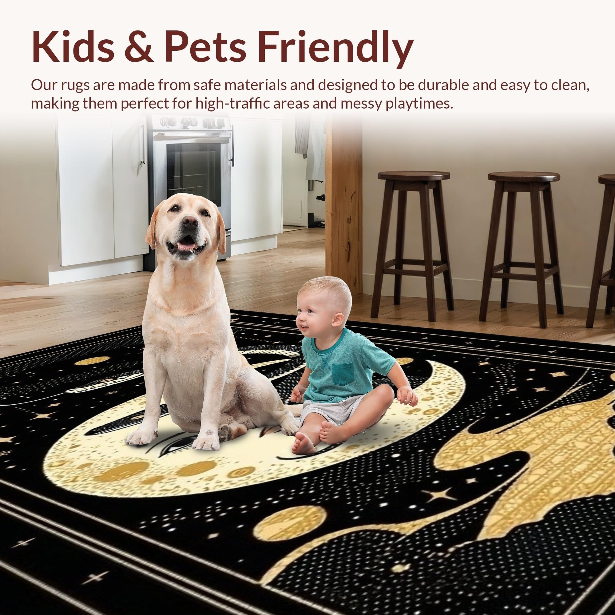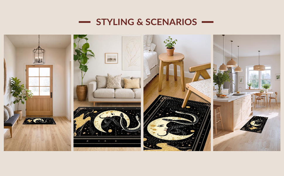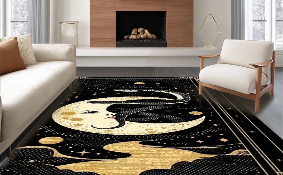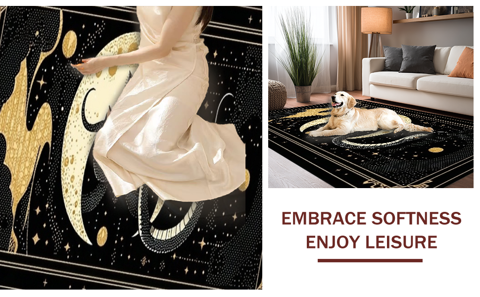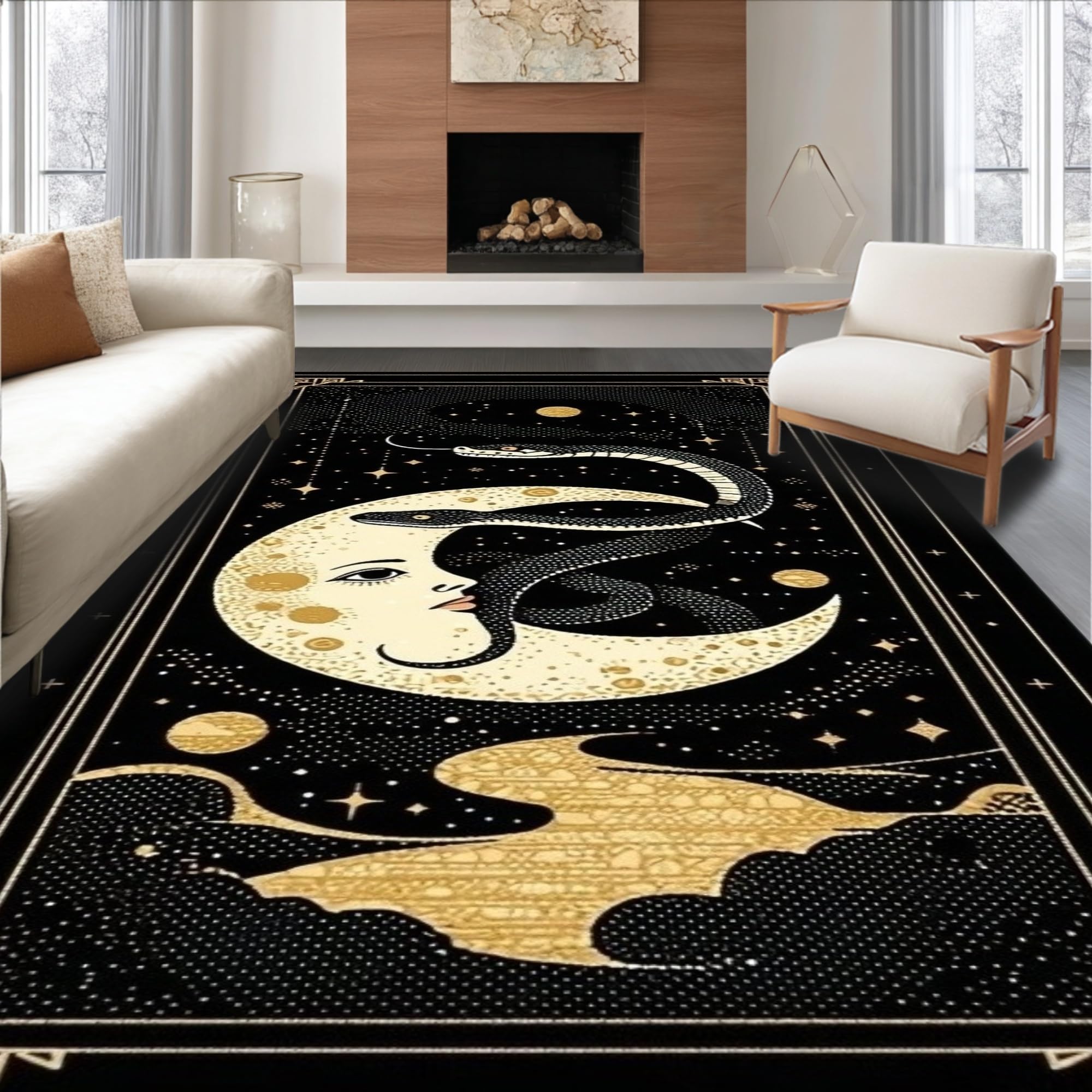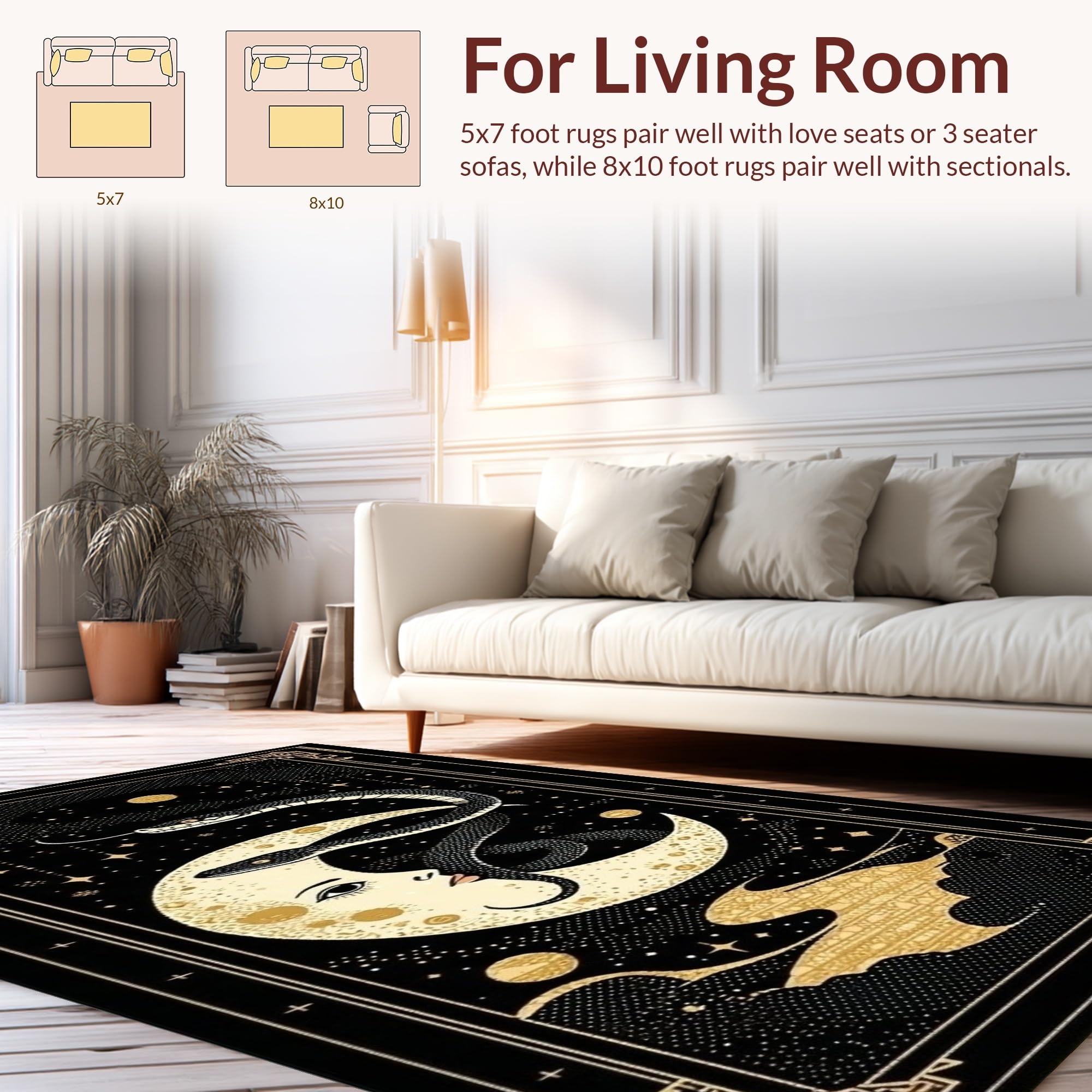 Ultra Soft Area Rug, Non Slip, Stain Resistant, Washable Area Rugs for Living Room, Bedroom, Gothic Celestial Snake Design(Black) Overview: