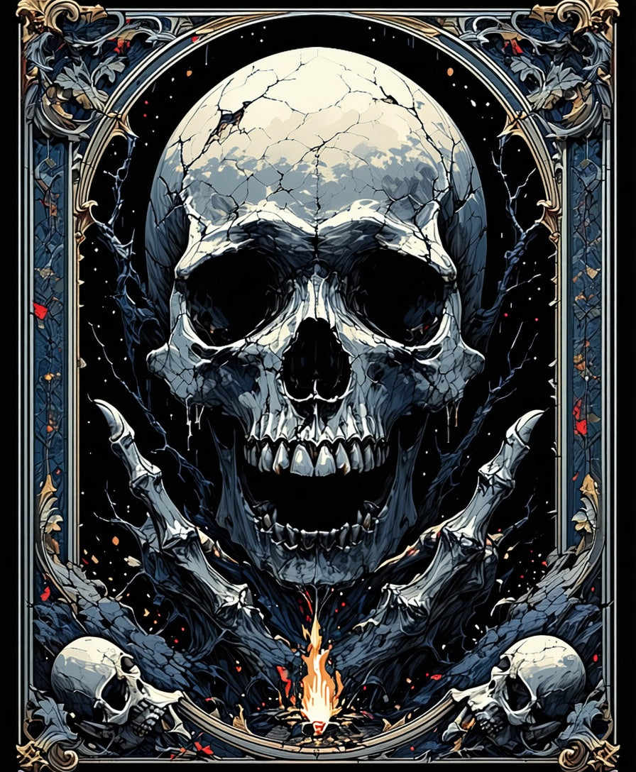 Gothic Floral Skull Motif(Gray)