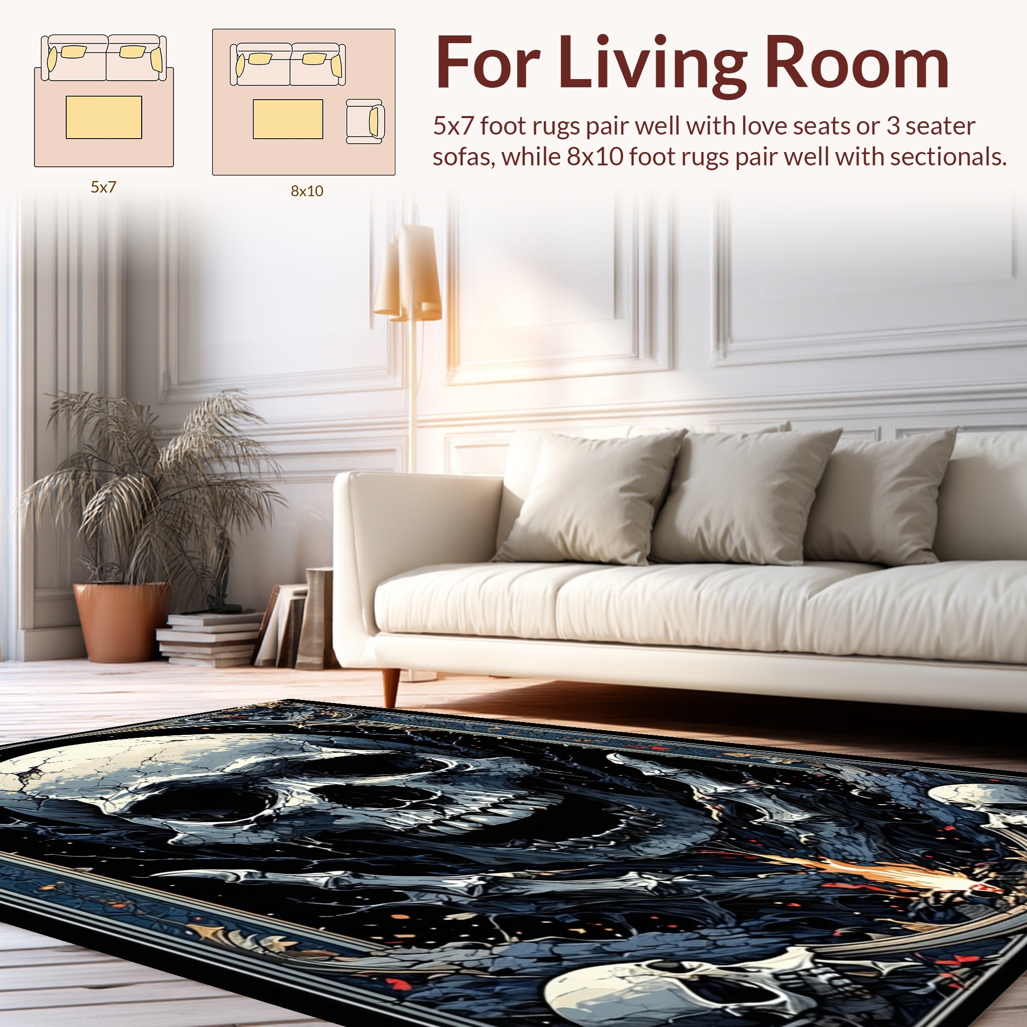 Flatwoven High Traffic Area Rug, Gothic Floral Skull Motif, Non Slip, Stain Resistant, Washable Area Rugs for Living Room, Bedroom (Gray) Overview: