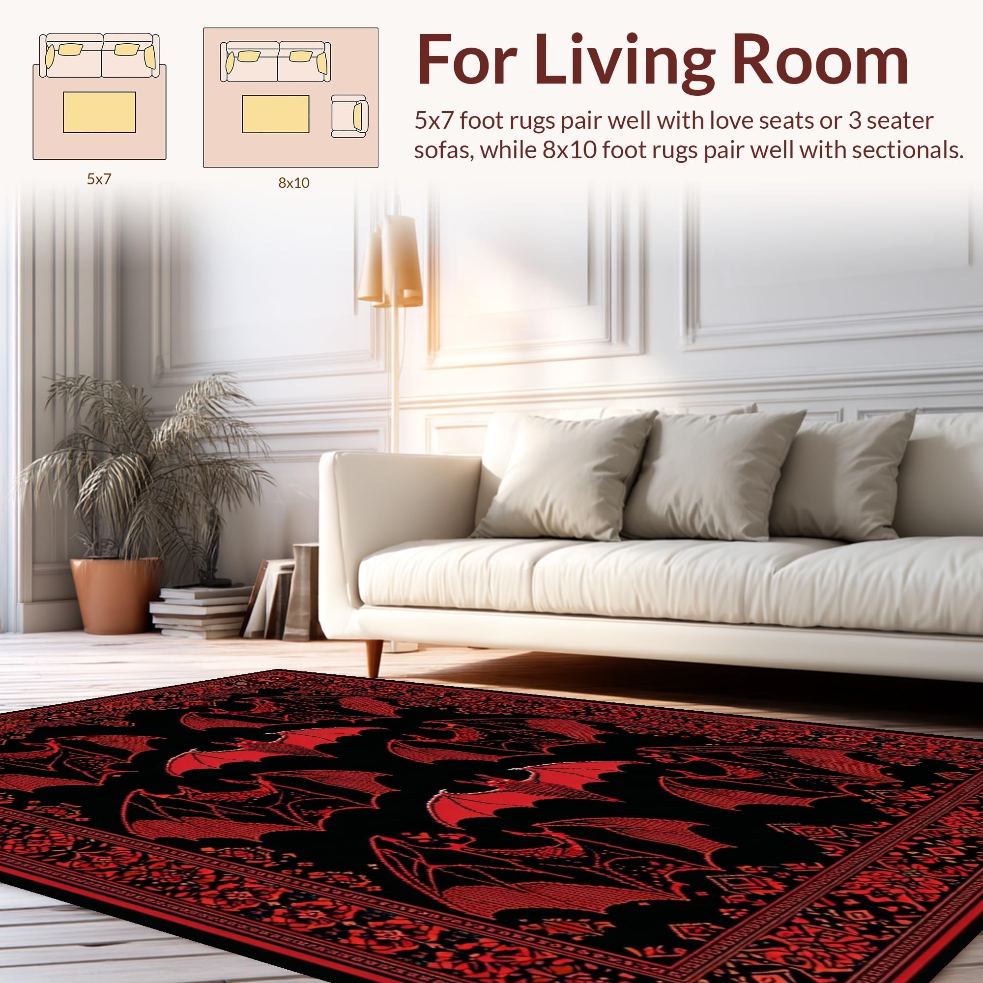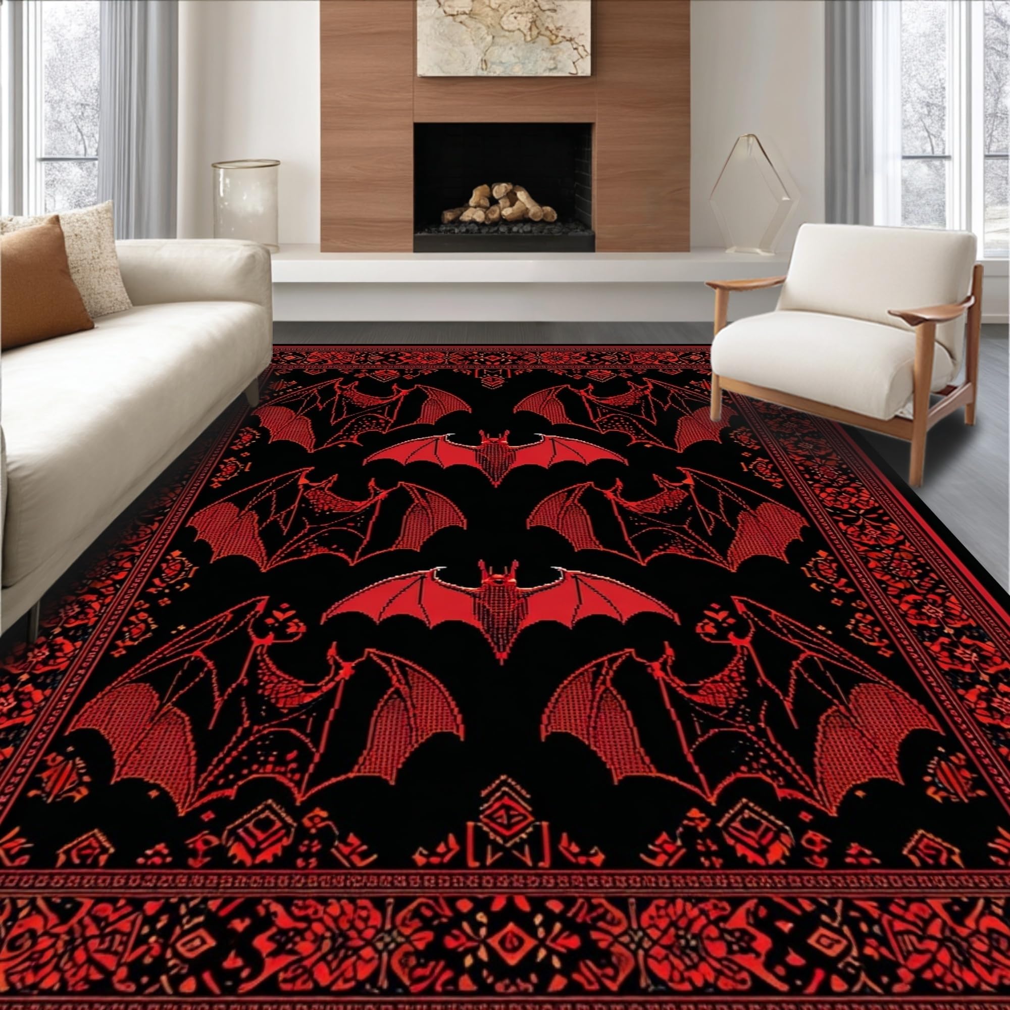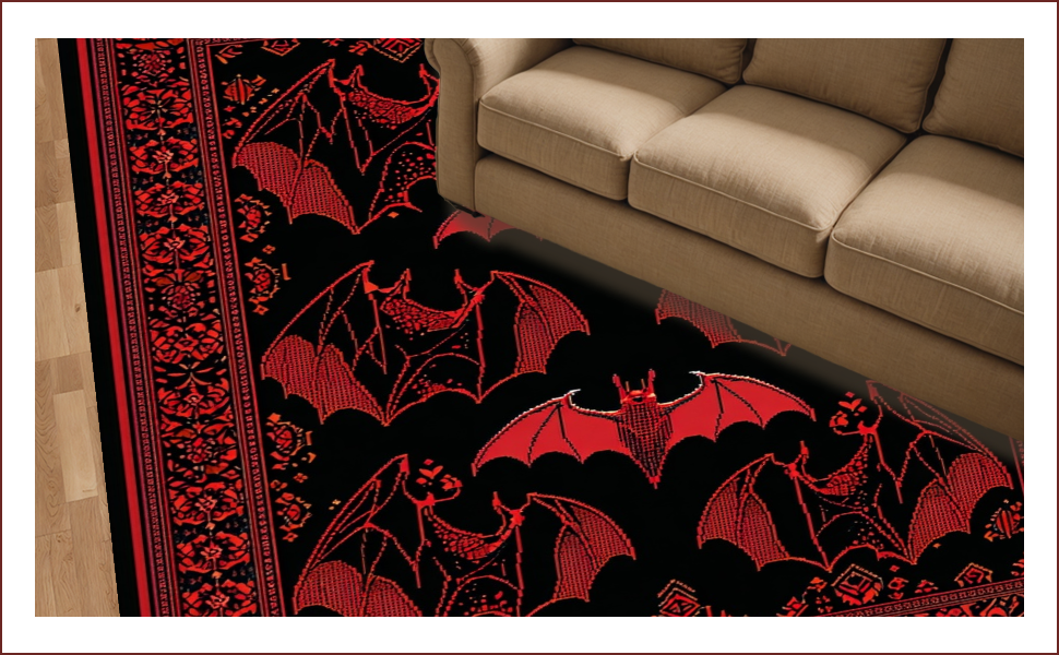 Ultra Soft Area Rug, Non Slip, Stain Resistant, Washable Area Rugs for Living Room, Bedroom, Gothic Silhouette Bat Aesthetic(Black) Overview: