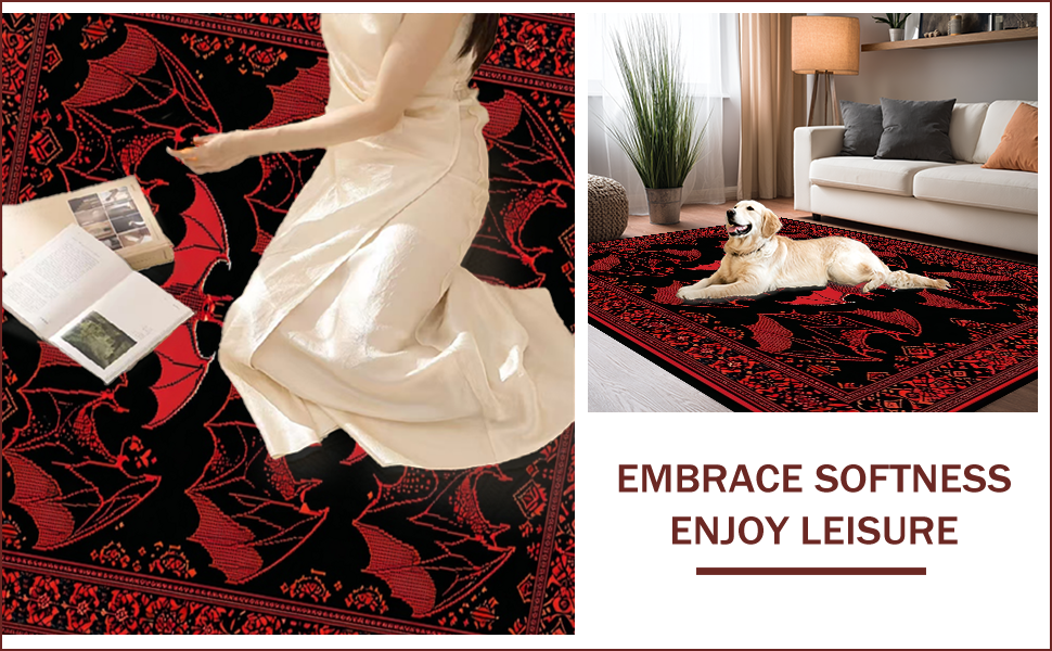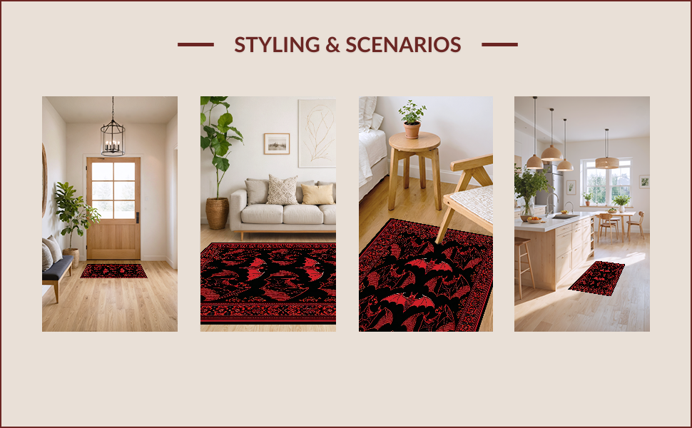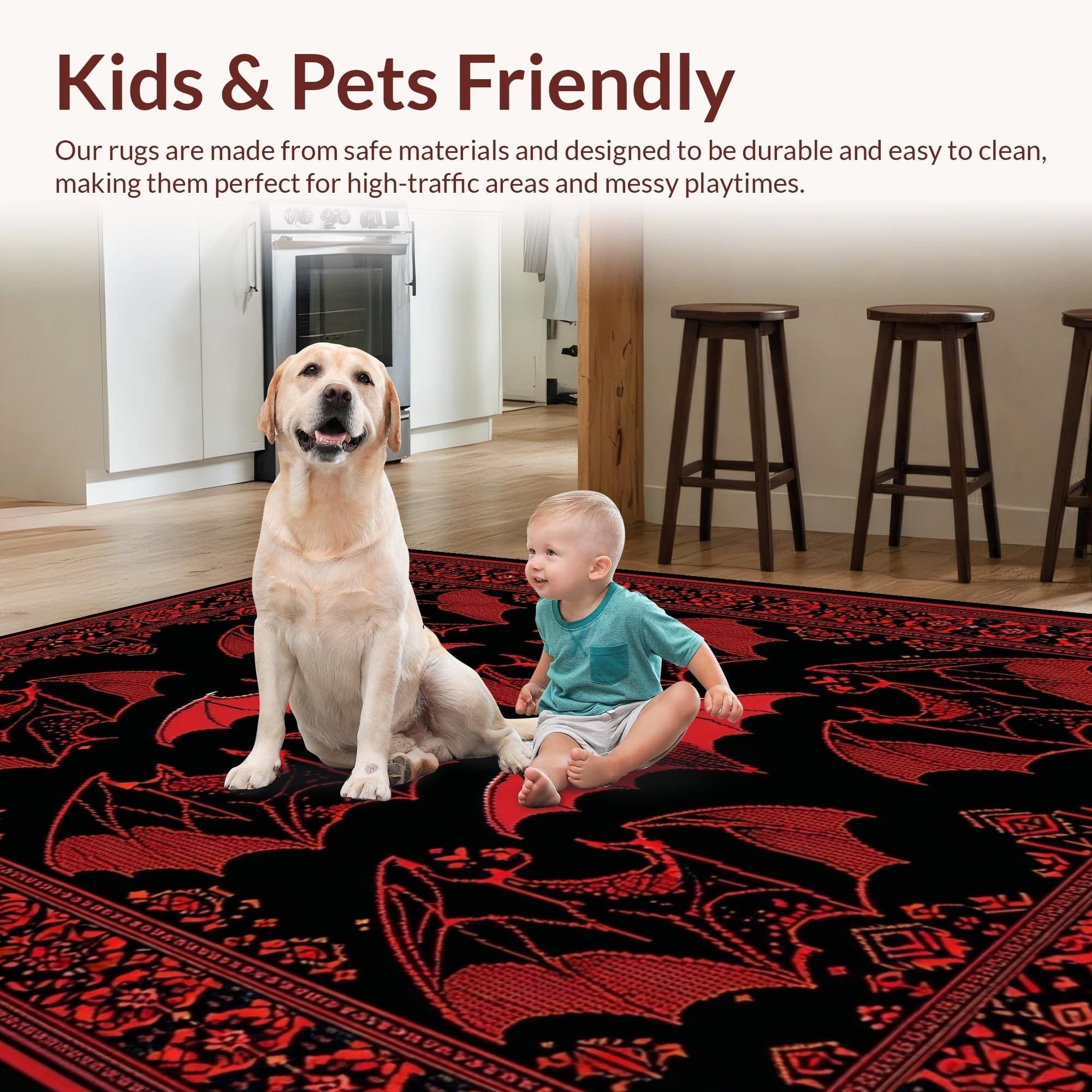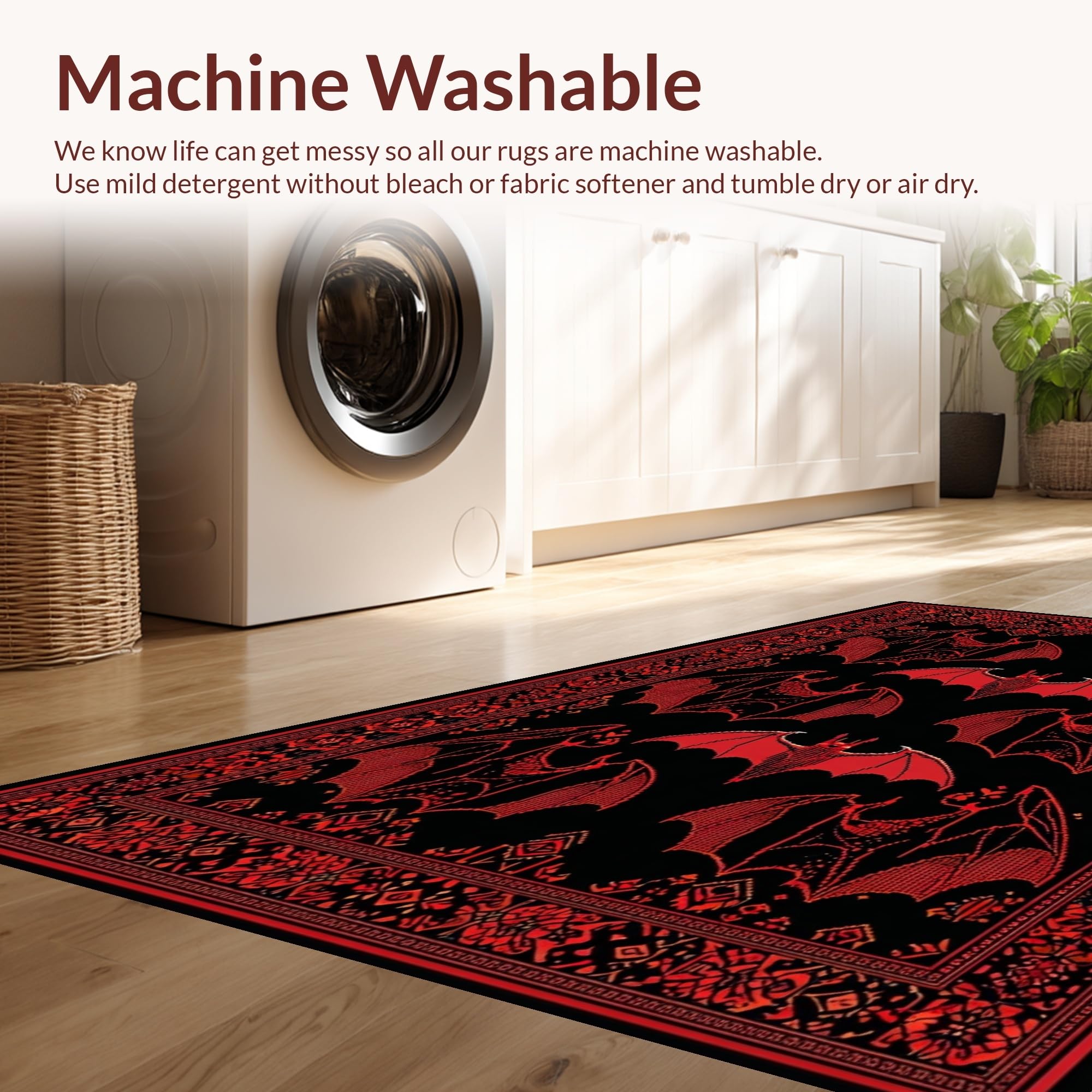 Ultra Soft Area Rug, Non Slip, Stain Resistant, Washable Area Rugs for Living Room, Bedroom, Gothic Silhouette Bat Aesthetic(Black) Overview: