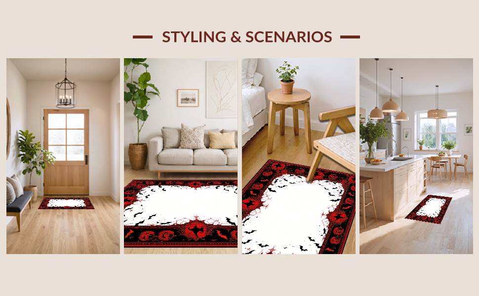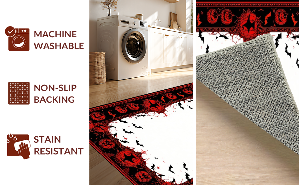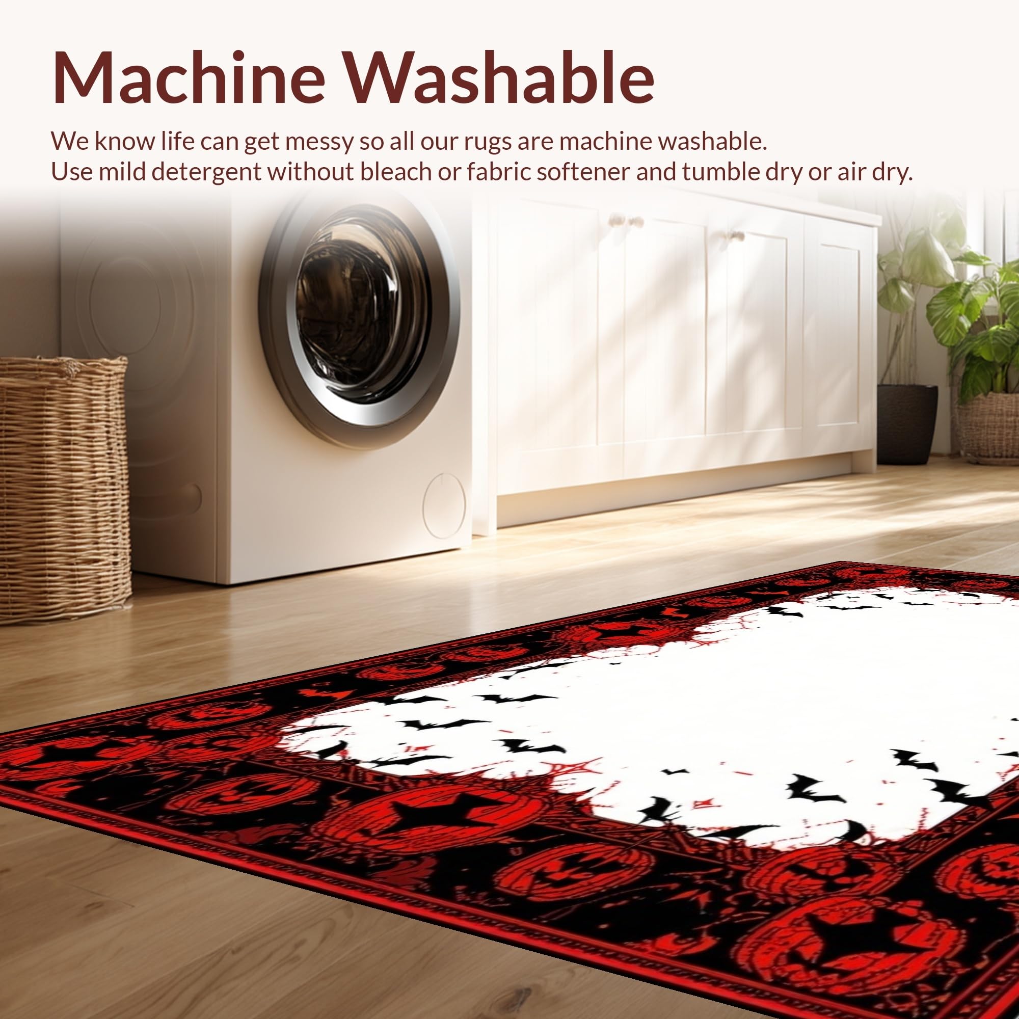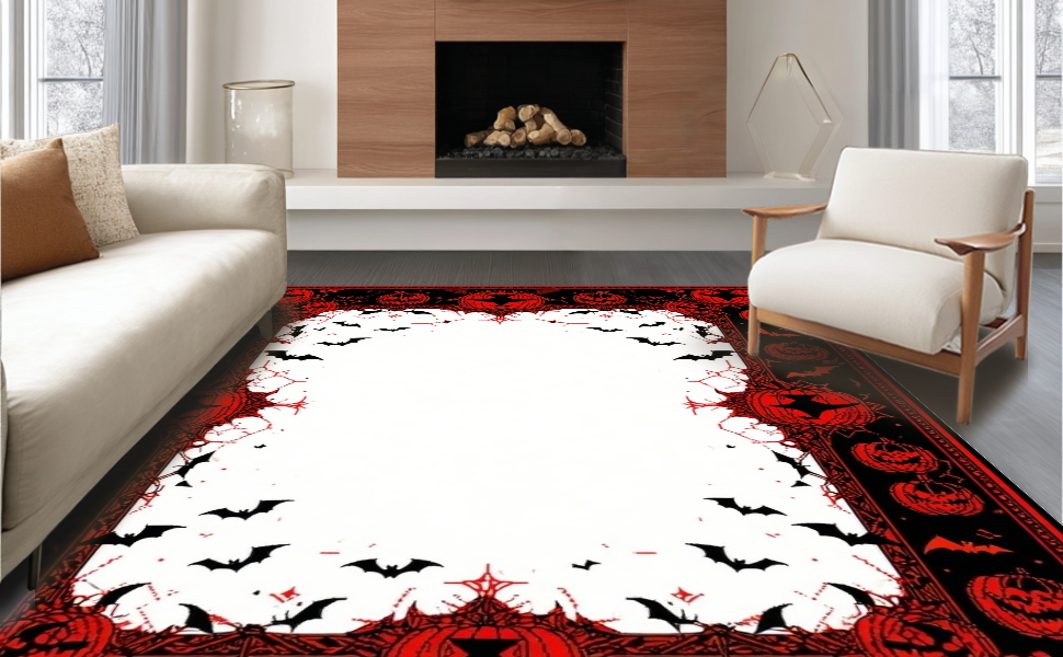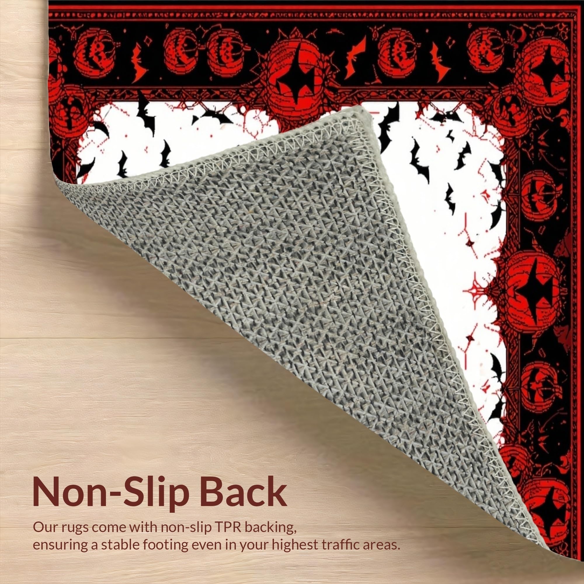 Ultra Soft Area Rug, Non Slip, Stain Resistant, Washable Area Rugs for Living Room, Bedroom, Gothic Spooky Bat Silhouette(Black) Overview:
