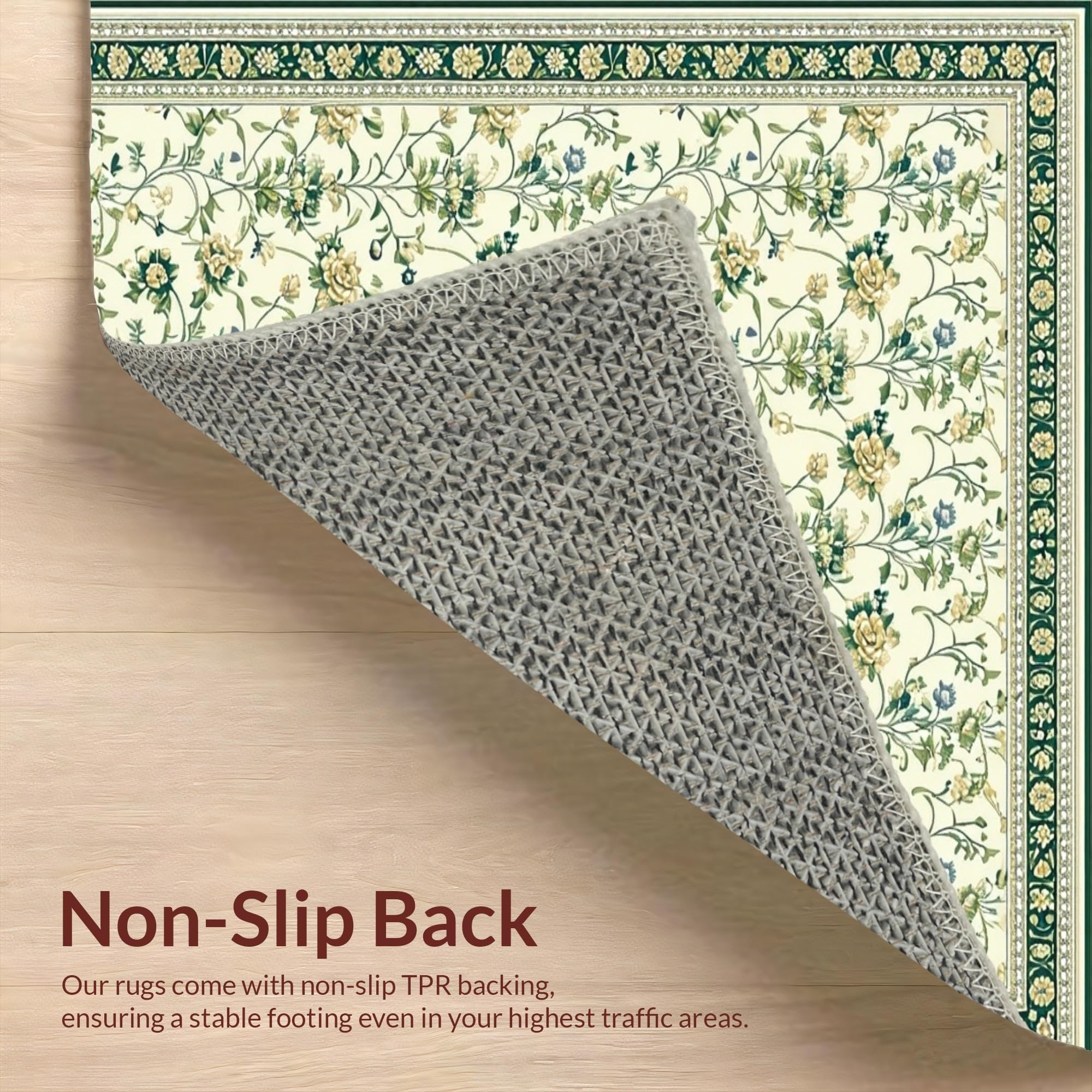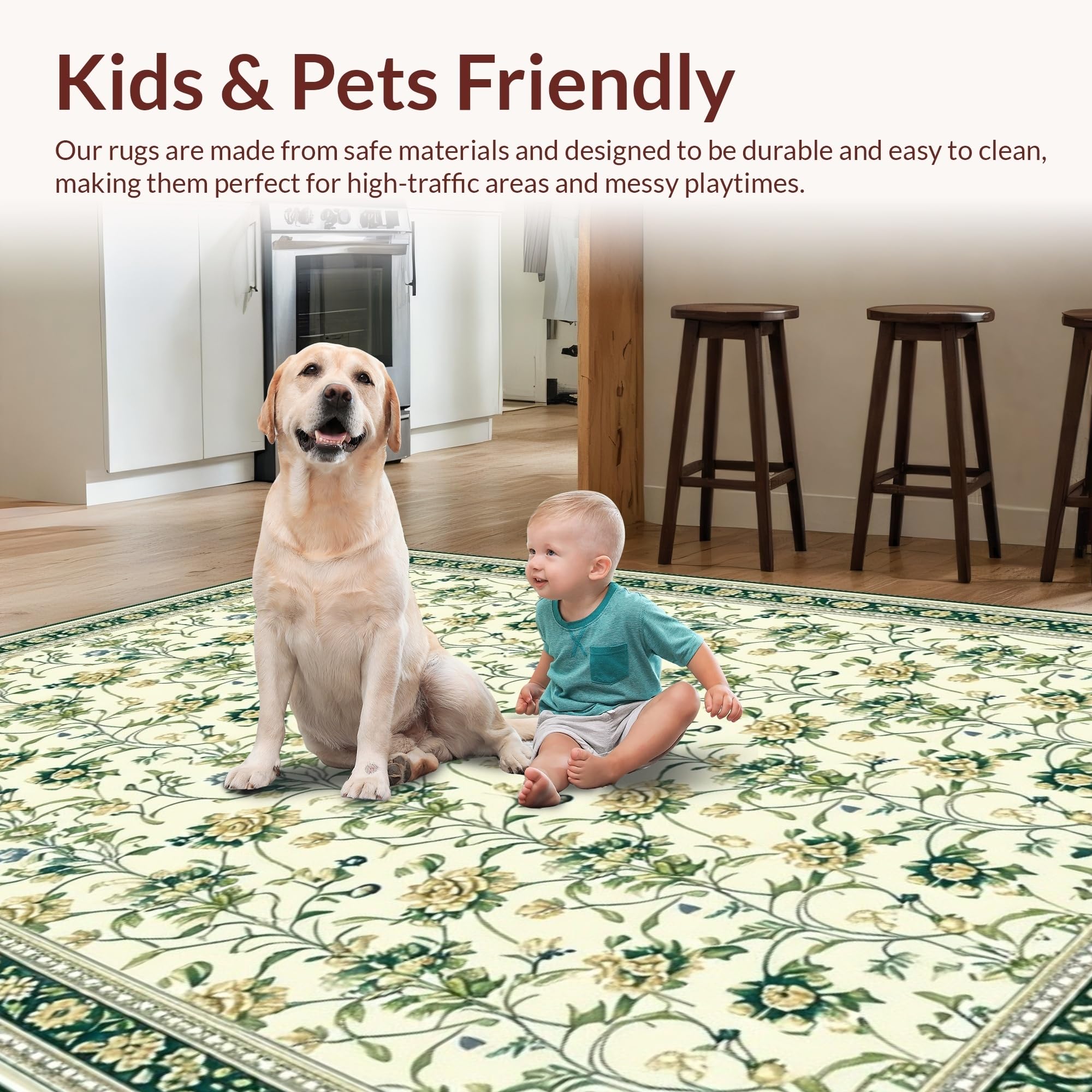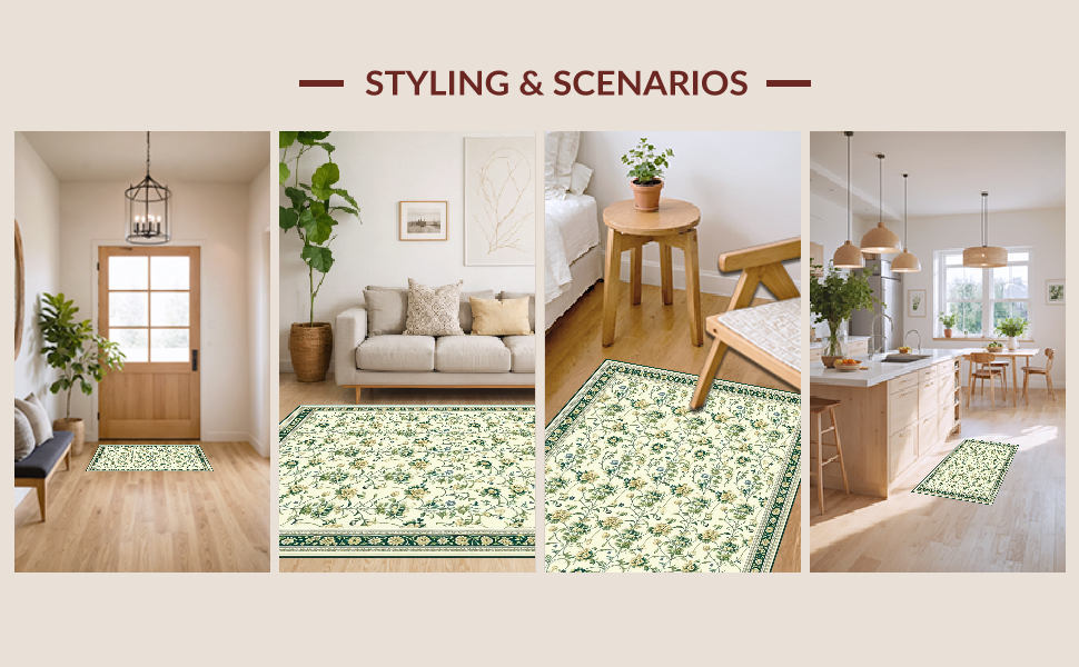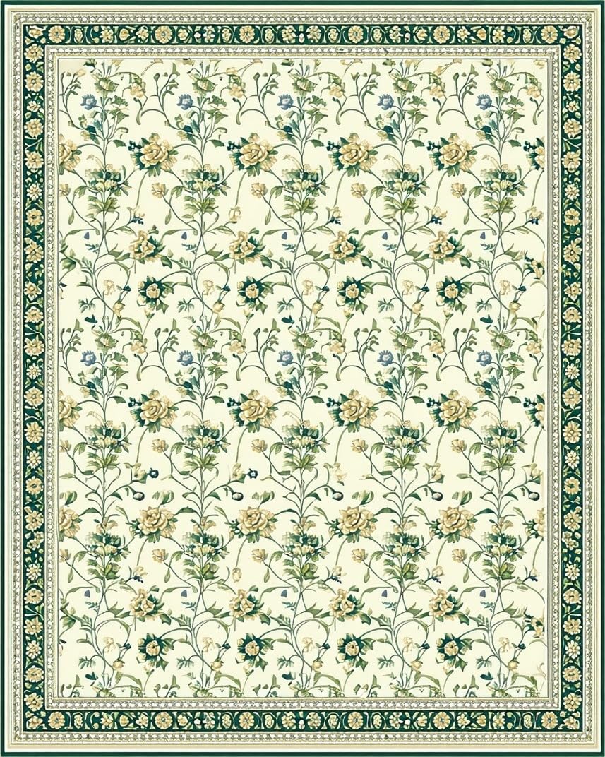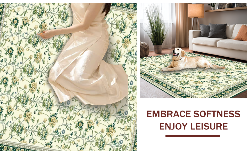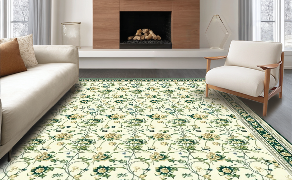 Ultra Soft Area Rug, Non Slip, Stain Resistant, Washable Area Rugs for Living Room, Bedroom, Graceful Green Accent Design(Beige) Overview: