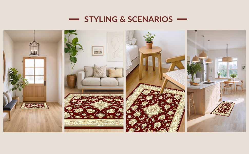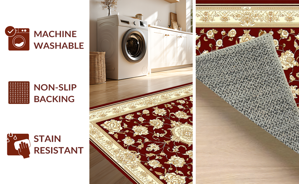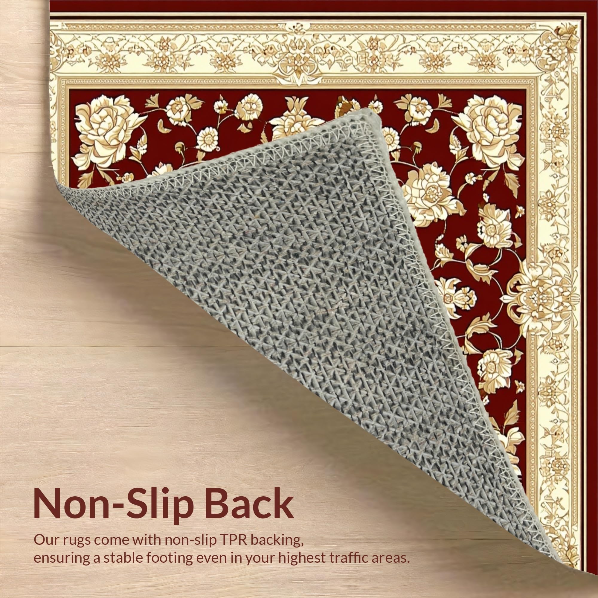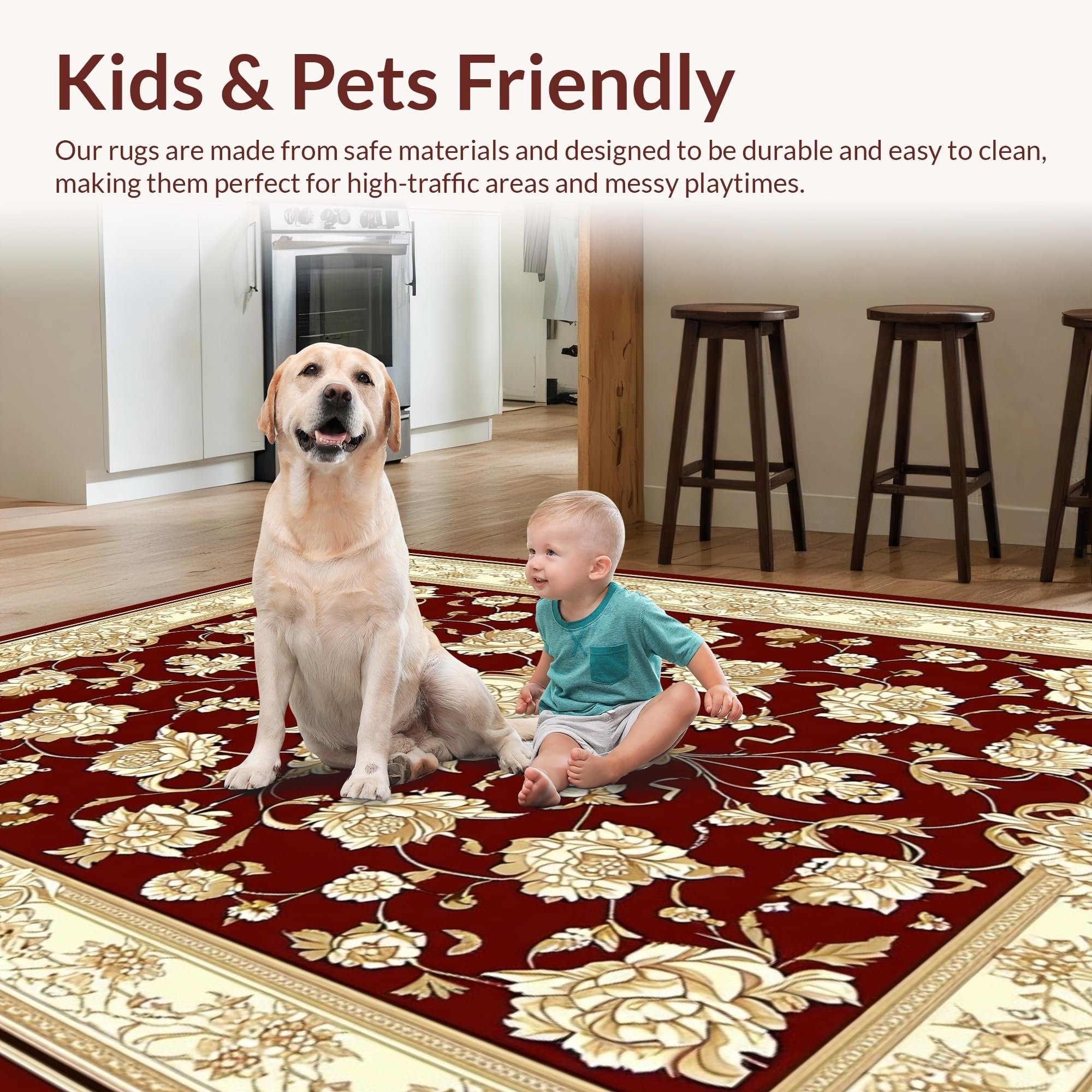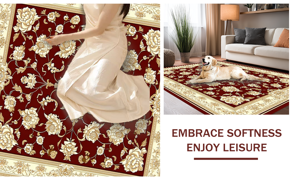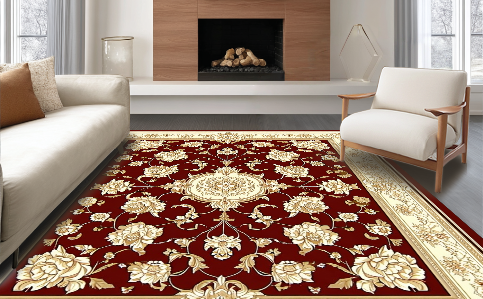 Ultra Soft Area Rug, Non Slip, Stain Resistant, Washable Area Rugs for Living Room, Bedroom, Graceful Intricate Border Accent(Red) Overview: