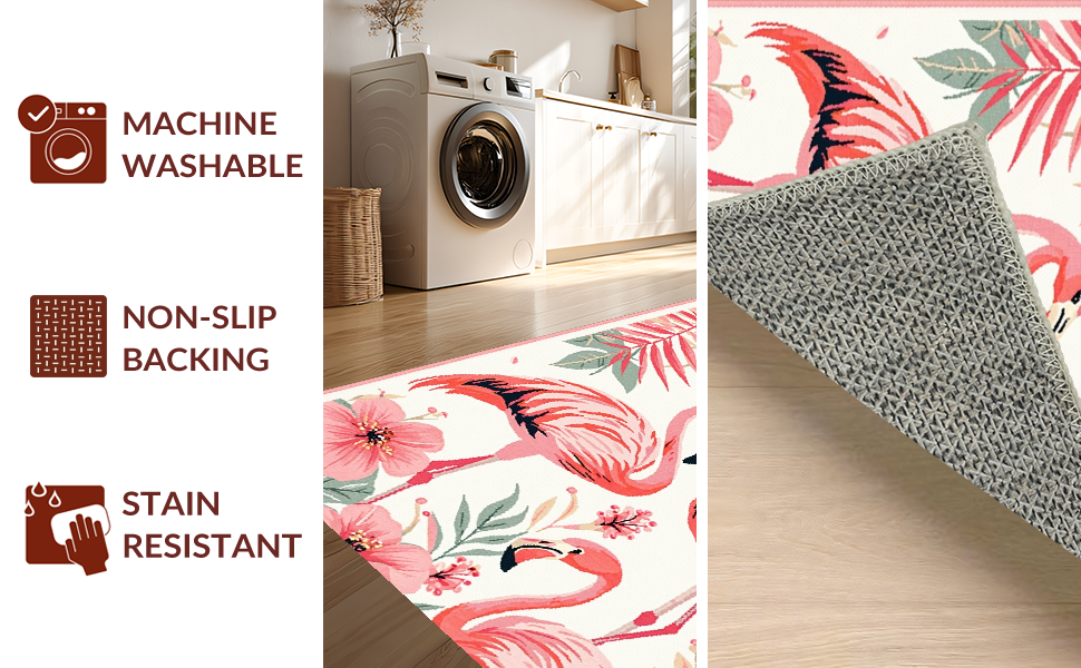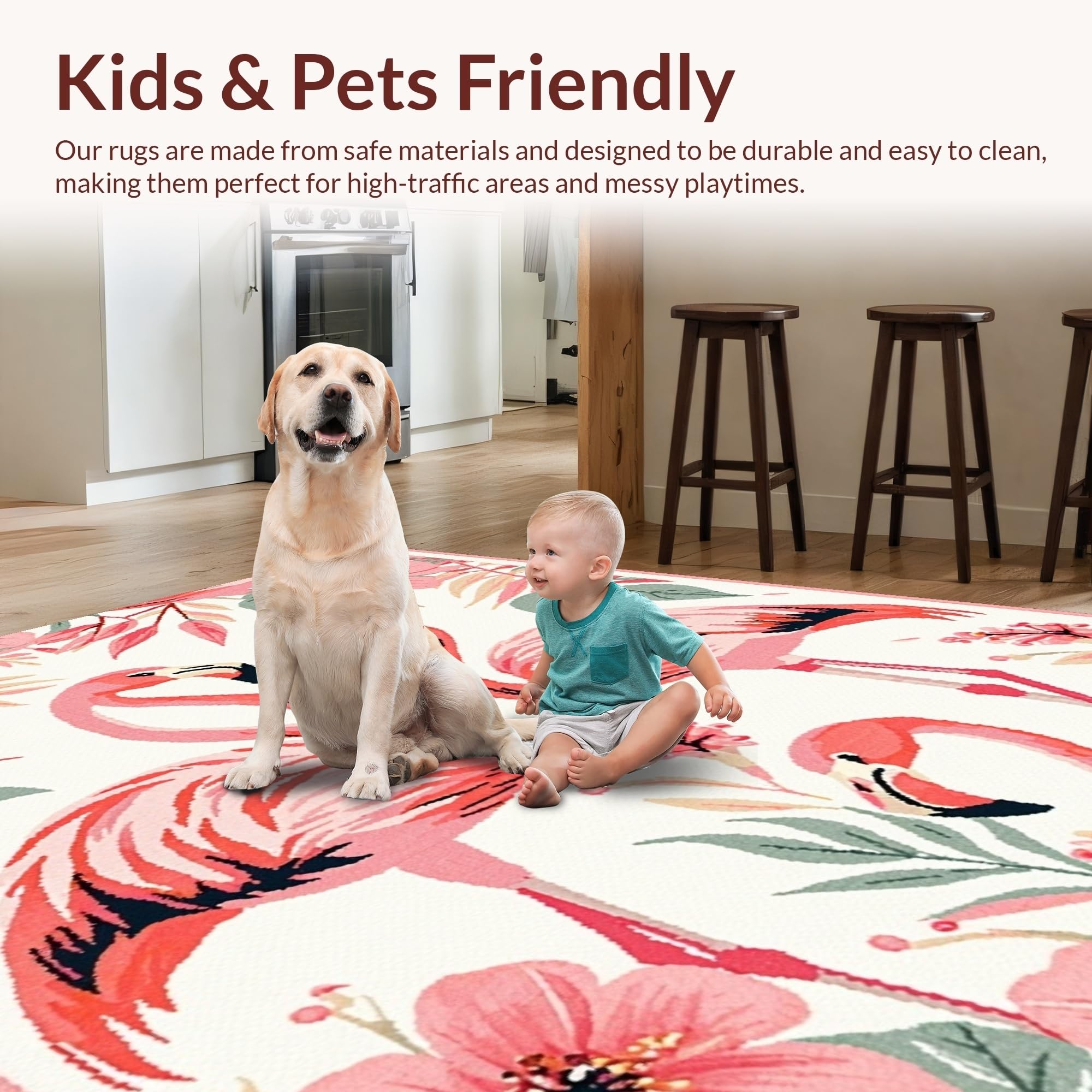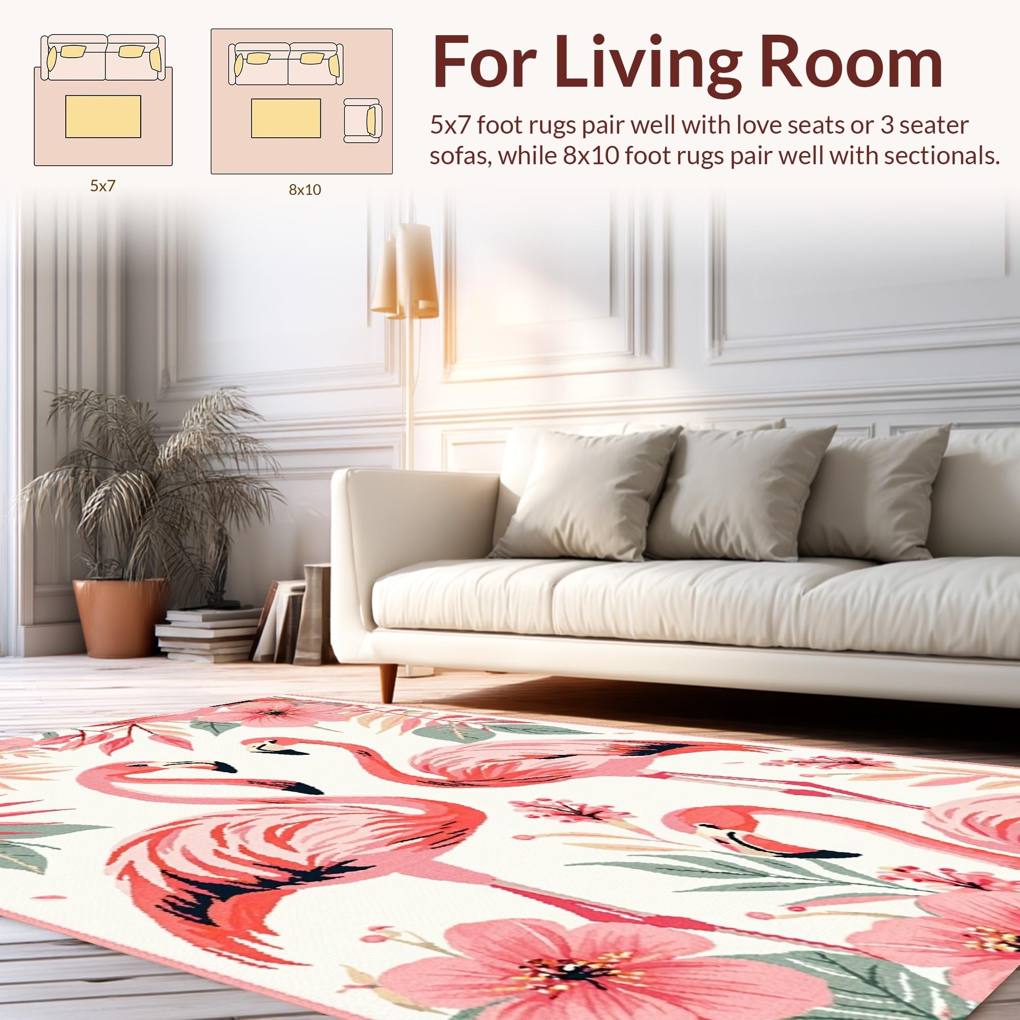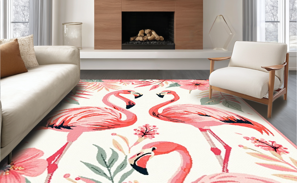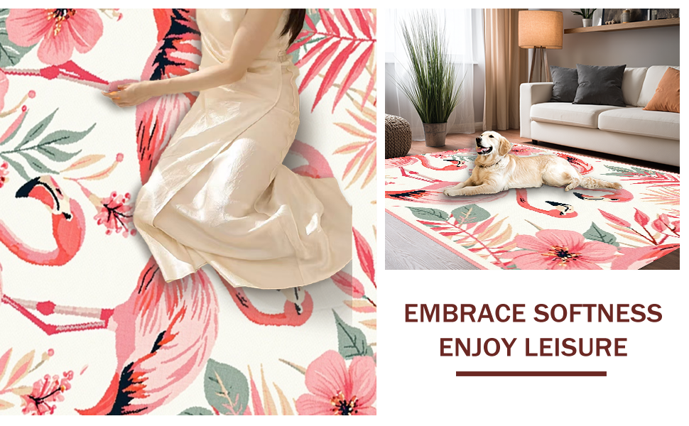 Ultra Soft Area Rug, Non Slip, Stain Resistant, Washable Area Rugs for Living Room, Bedroom, Graceful Leafy Tropics Theme(Pink) Overview: