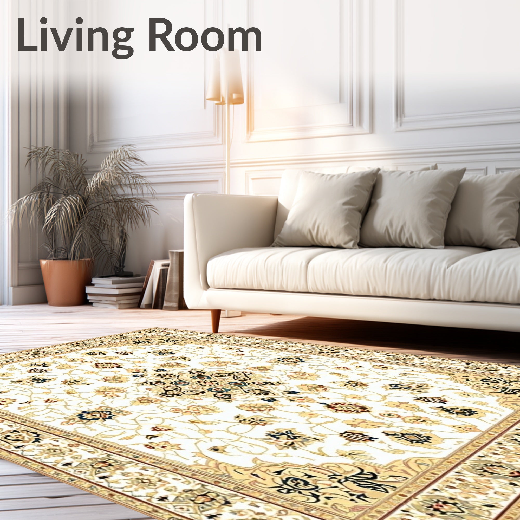 Ultra Soft Area Rug, Non Slip, Stain Resistant, Washable Area Rugs for Living Room, Bedroom, Graceful Medallion Area Non Slip Vintage Style Beige(White) Overview: