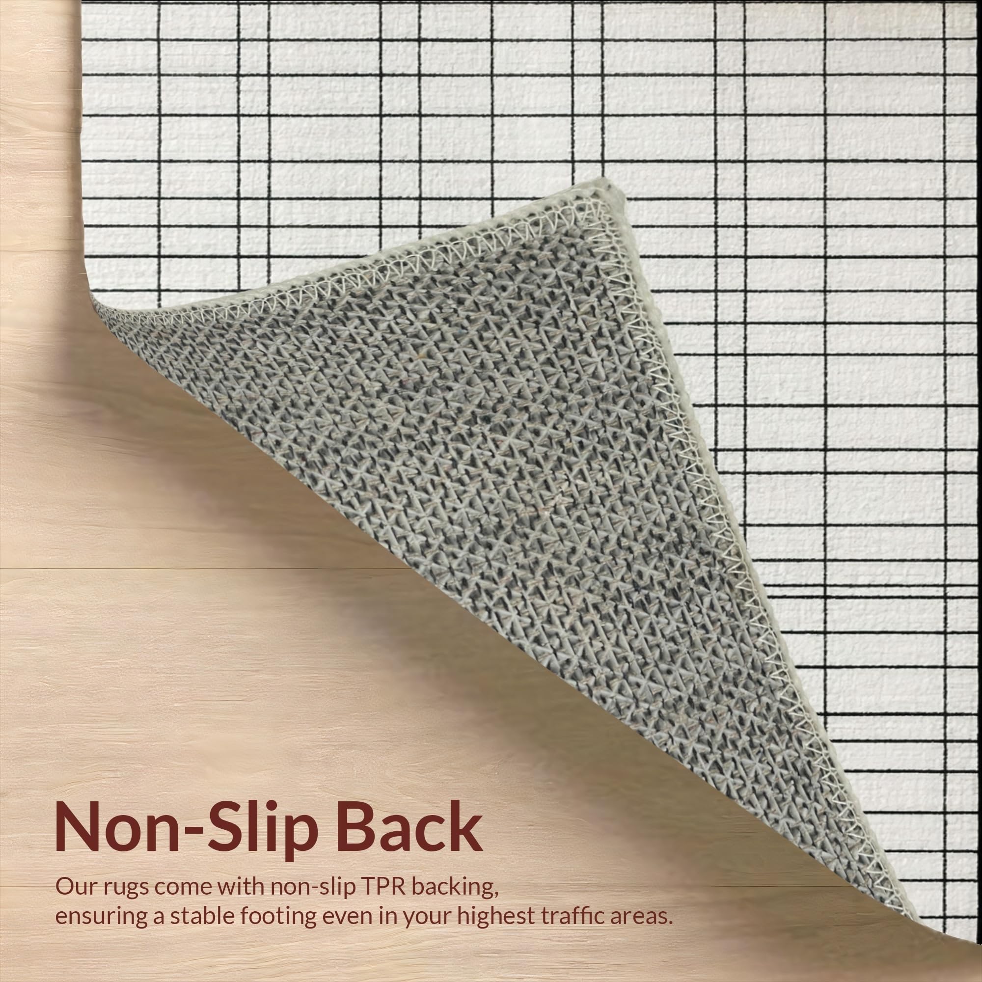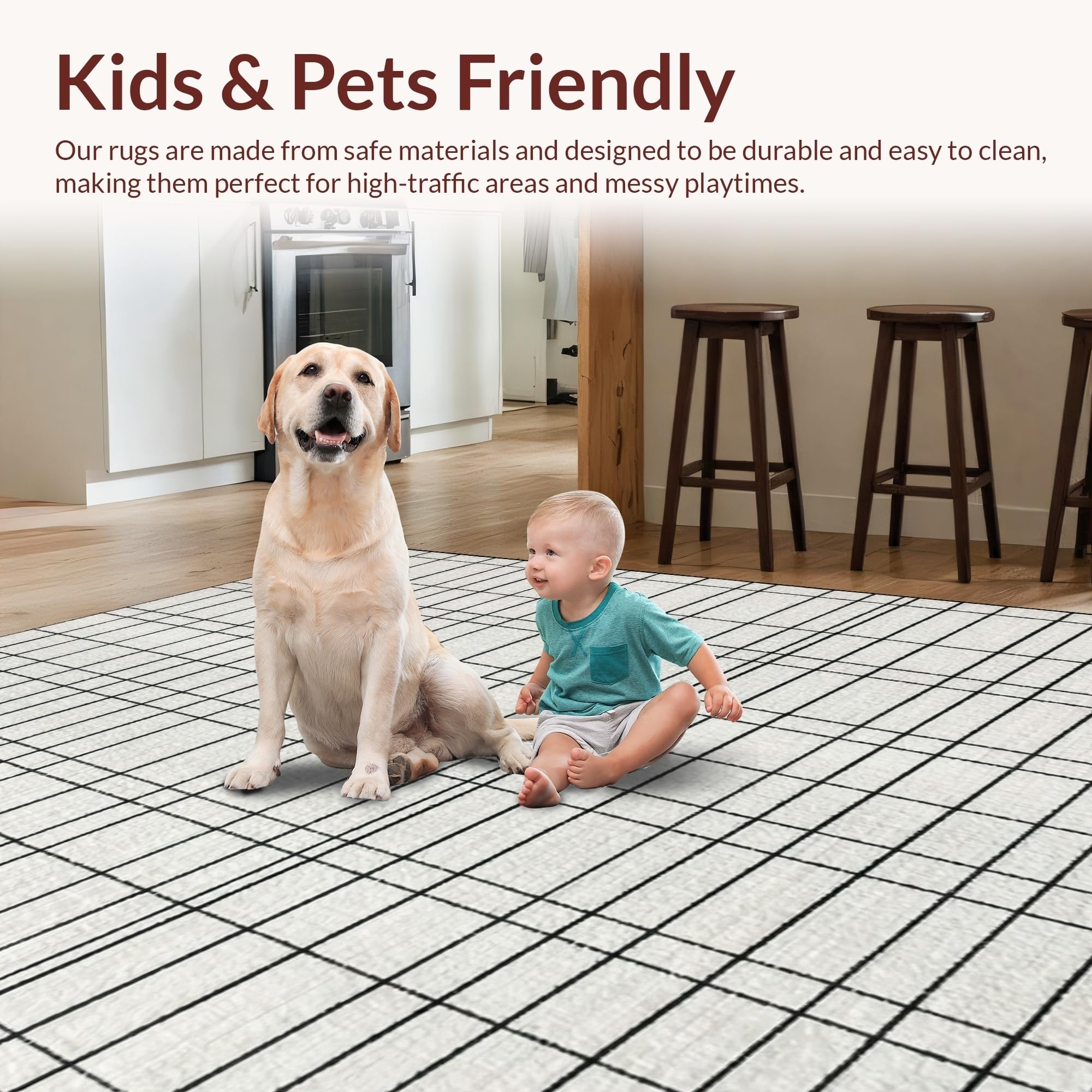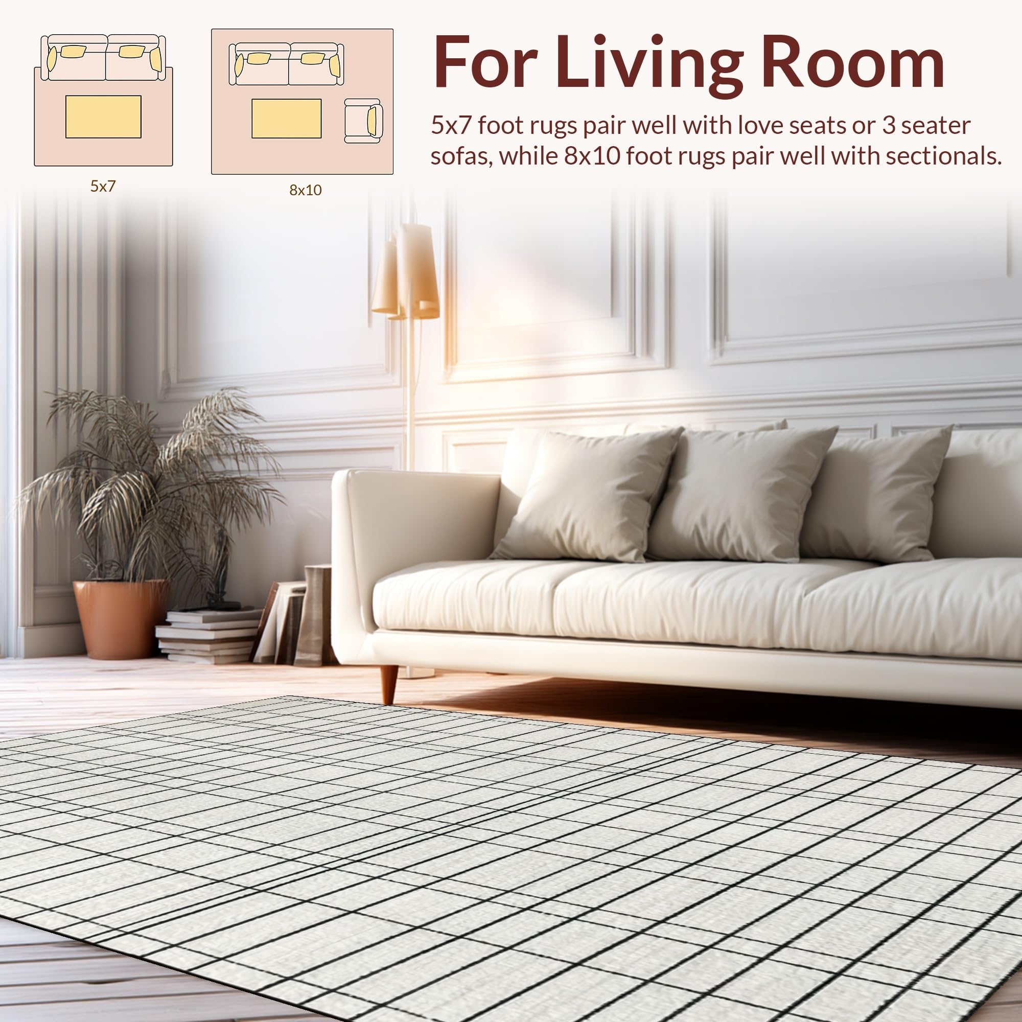 Ultra Soft Area Rug, Non Slip, Stain Resistant, Washable Area Rugs for Living Room, Bedroom, Graphic Balance Striped Rug with Crisp Black Lines and Modern Minimalist Pattern(Beige) Overview: