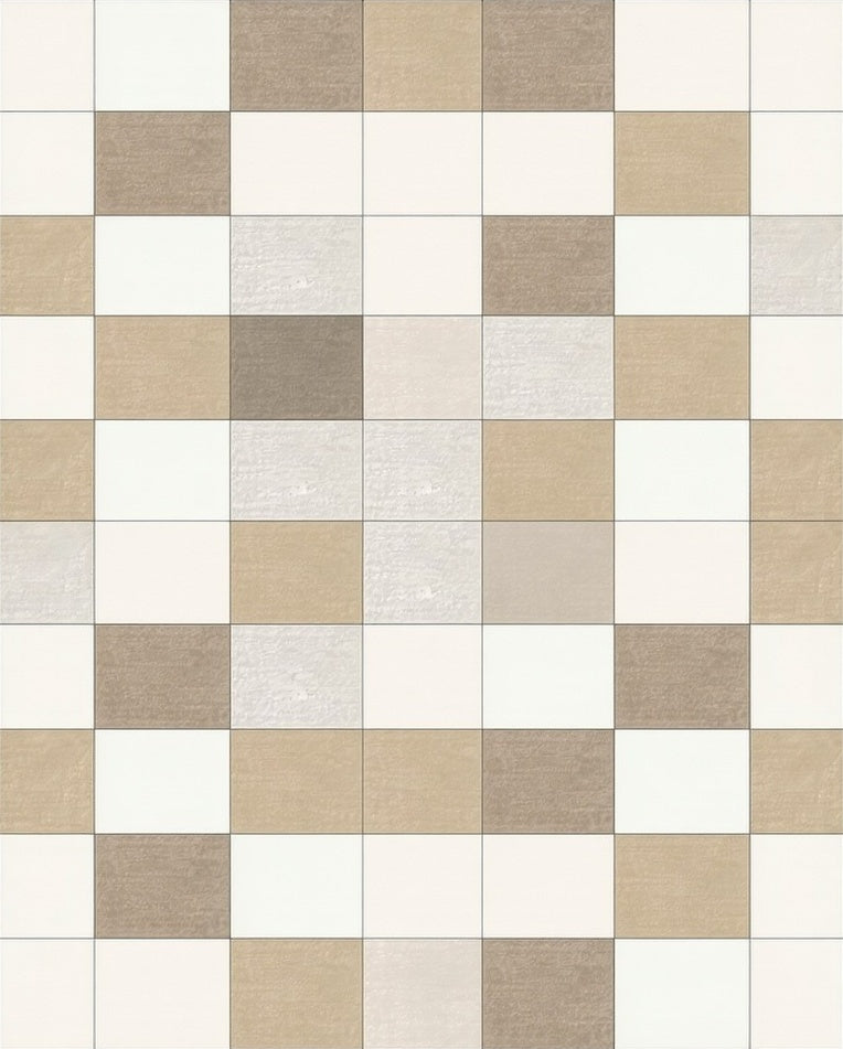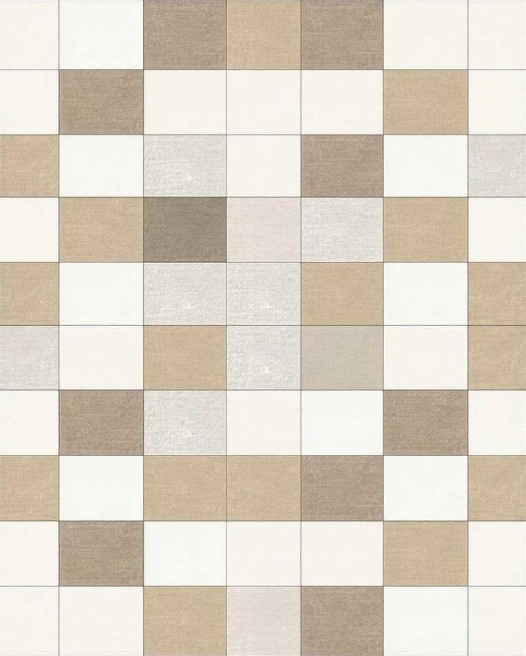 Graphic Check Mate Area with Modern Beige and White Block Motifs(Beige)
