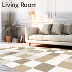 Ultra Soft Area Rug, Non Slip, Stain Resistant, Washable Area Rugs for Living Room, Bedroom, Graphic Check Mate Area with Modern Beige and White Block Motifs(Beige) Overview: