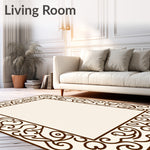 Ultra Soft Area Rug, Non Slip, Stain Resistant, Washable Area Rugs for Living Room, Bedroom, Grecian Scroll Motif Interlaced Network Artisanal Crafted(Brown) Overview: