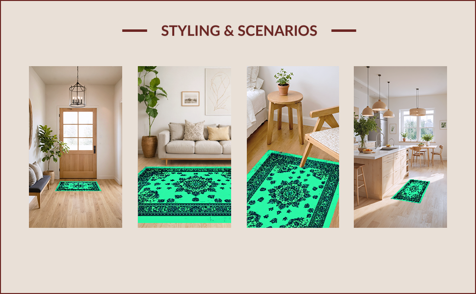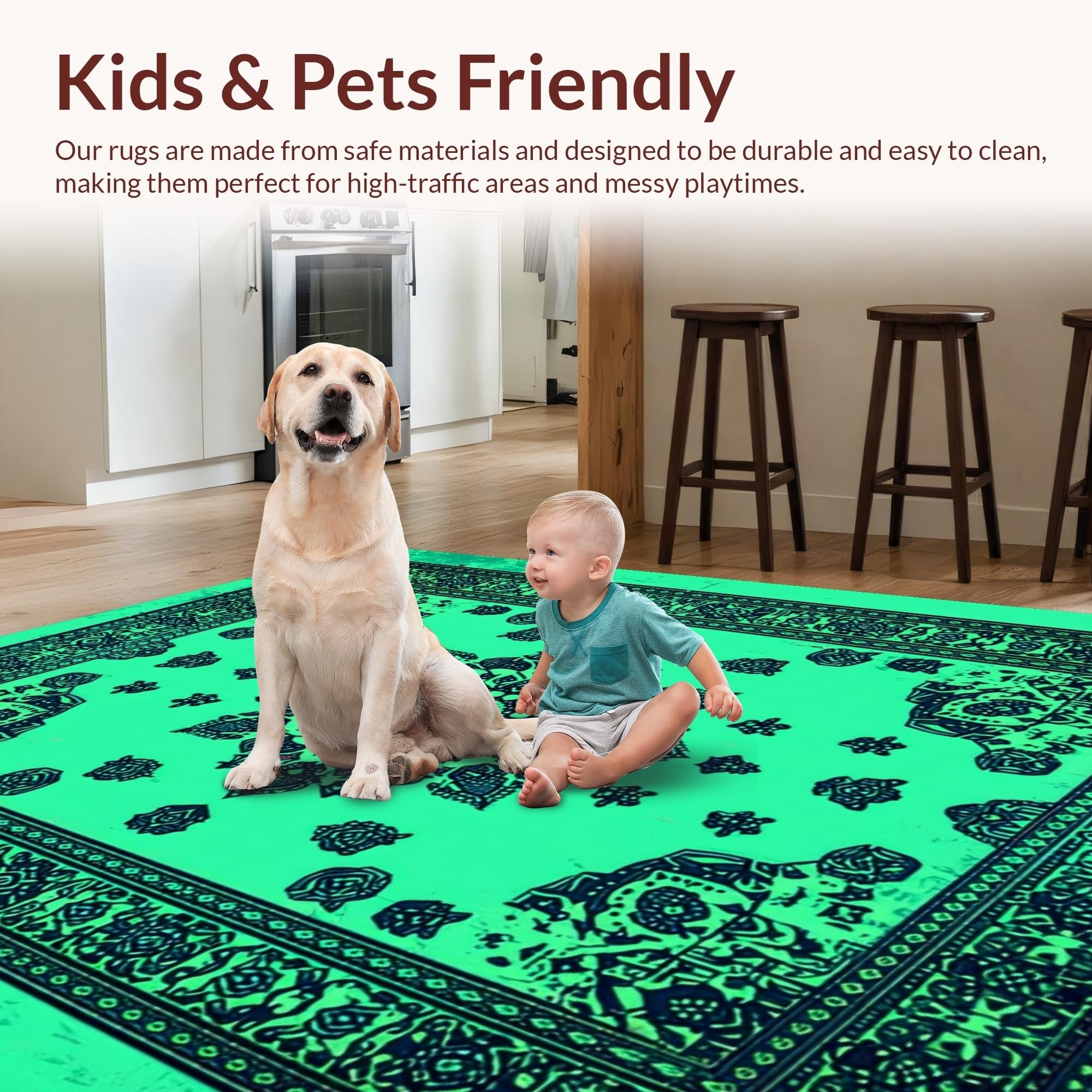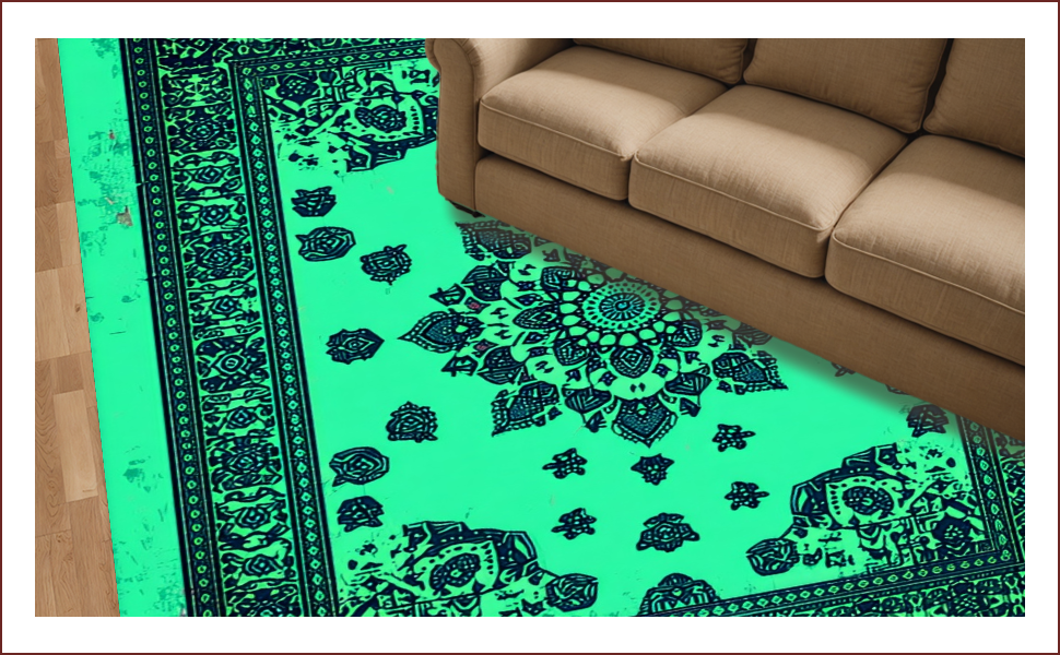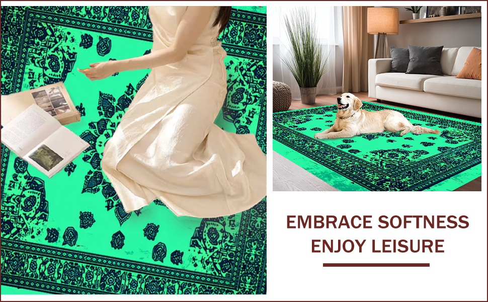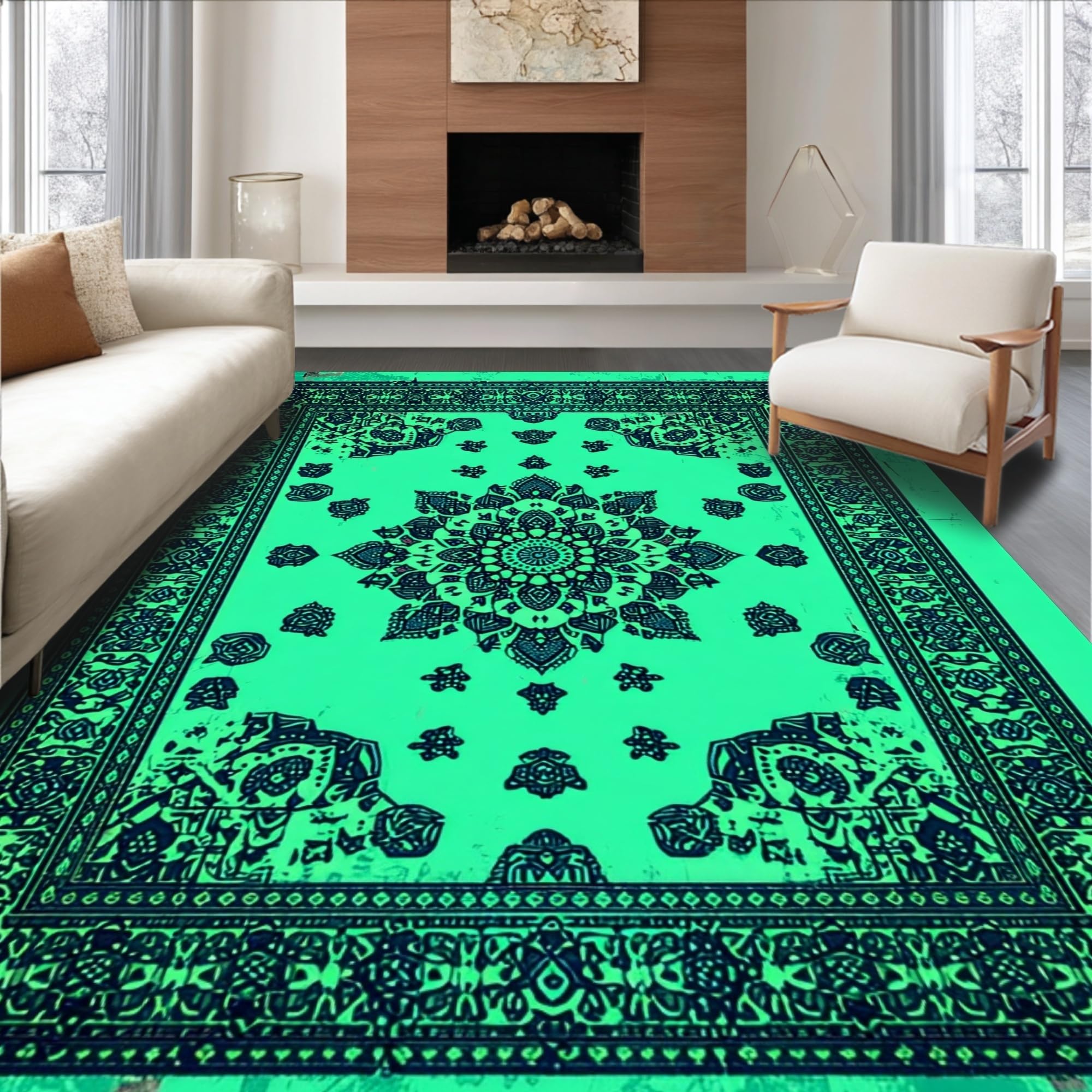 Ultra Soft Area Rug, Non Slip, Stain Resistant, Washable Area Rugs for Living Room, Bedroom, Green and Turquoise Meditation Space Easy Care Carpet(Blue) Overview: