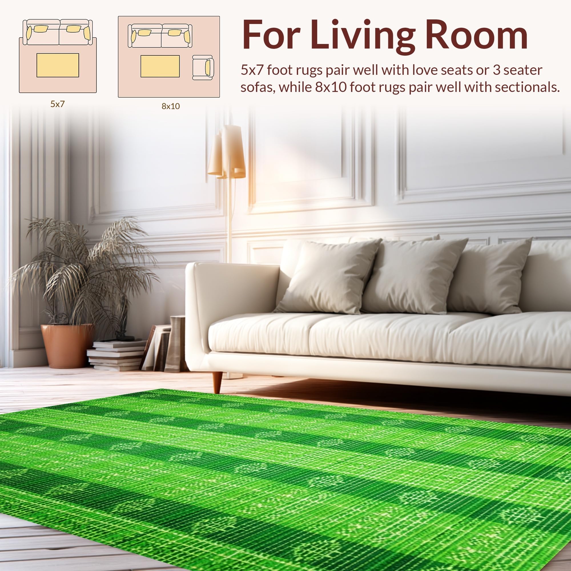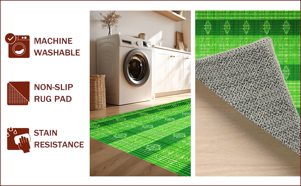 Ultra Soft Area Rug, Non Slip, Stain Resistant, Washable Area Rugs for Living Room, Bedroom, Green Neutral Dining Room Pet-Friendly Low Maintenance Rug(Green) Overview: