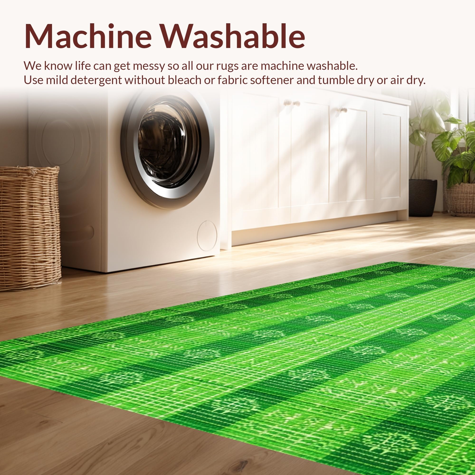 - Machine Washable: Our rugs can be easily thrown in the wash machine.