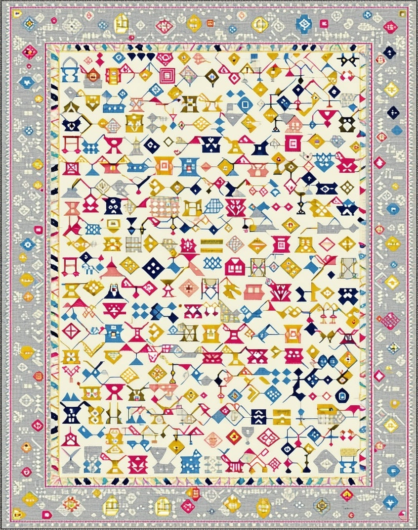 Grey and Beige Multi Colored Area with Whimsical(Beige)
