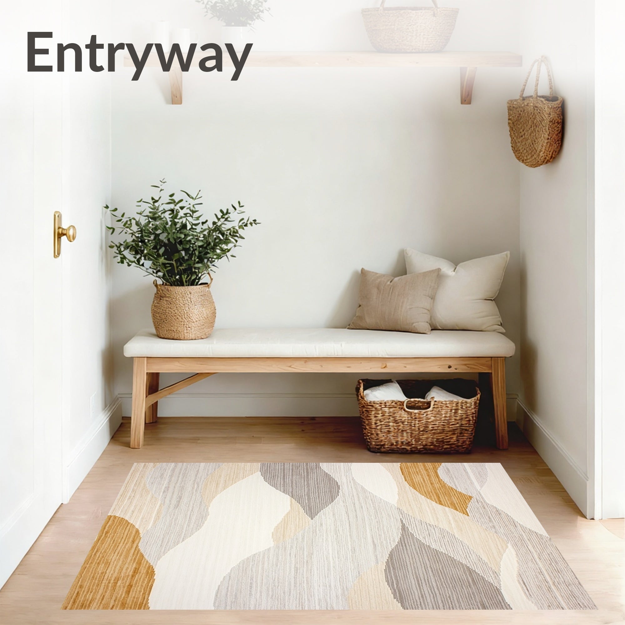 Ultra Soft Area Rug, Non Slip, Stain Resistant, Washable Area Rugs for Living Room, Bedroom, Grip Enhanced Area Rug Pad Gripper with Subdued Wave Lines for Carpet Stability(Beige) Overview: