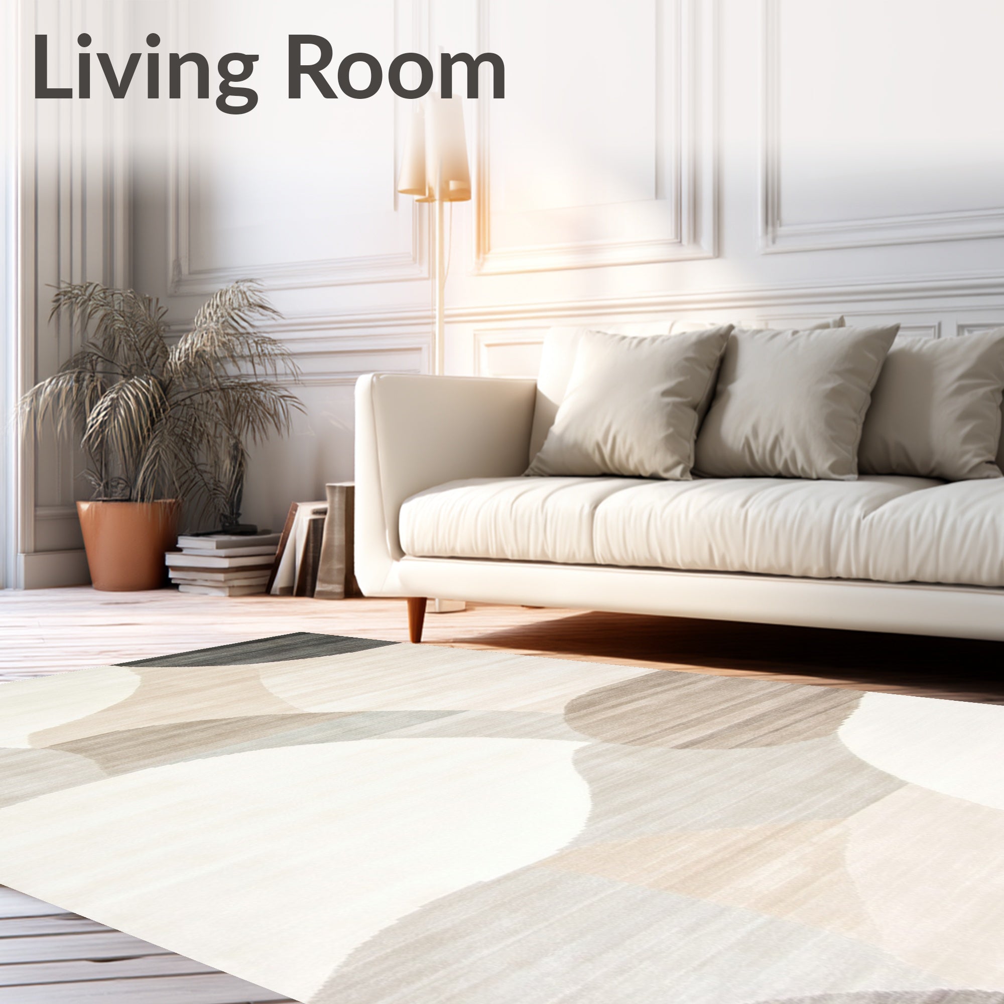 Ultra Soft Area Rug, Non Slip, Stain Resistant, Washable Area Rugs for Living Room, Bedroom, Half Circle Area Modern Minimalist Curved Line Non Skid(Beige) Overview: